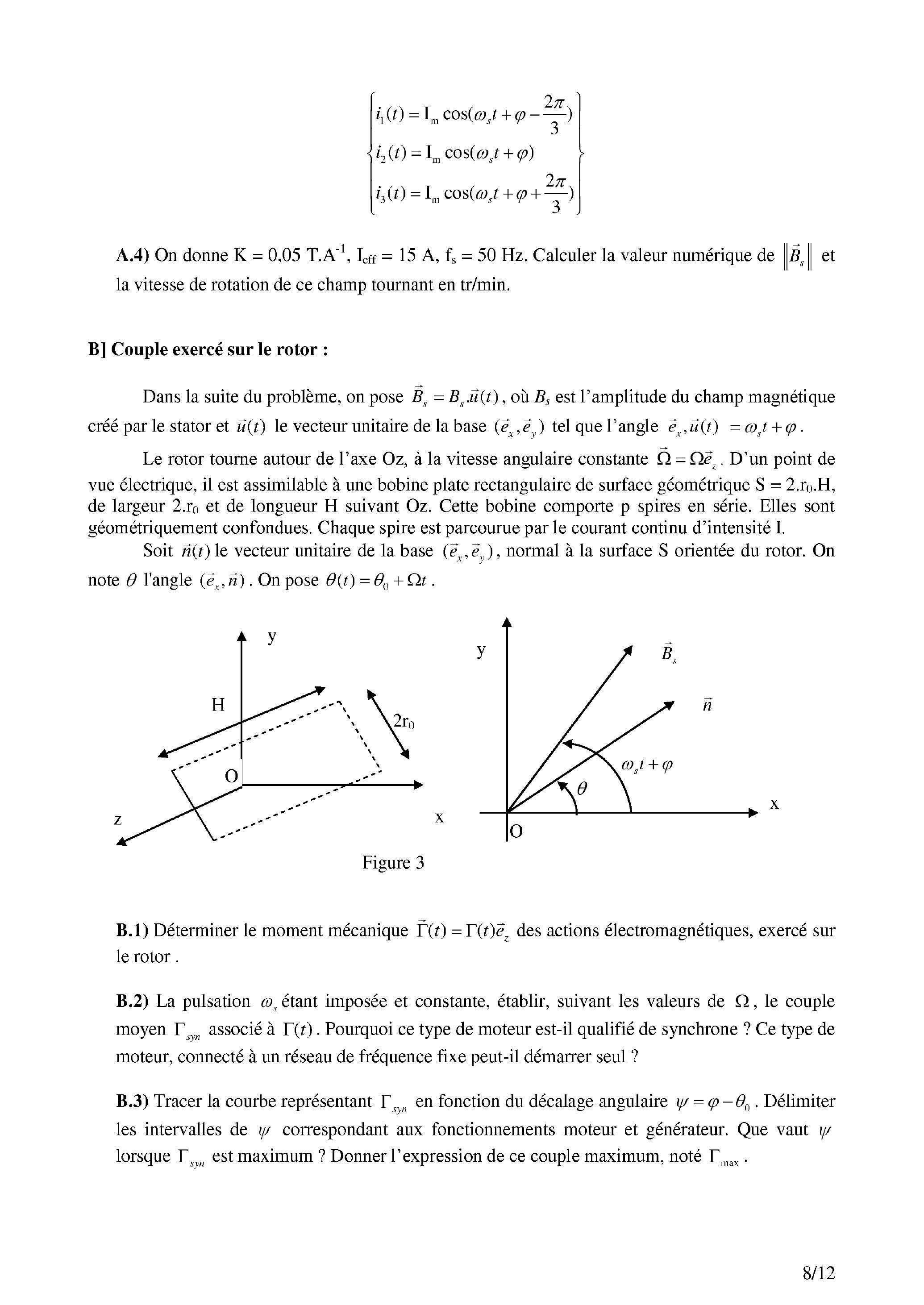 Dans la suite du problème, on pose , où est l'amplitude du champ magnétique créé par le stator et le vecteur unitaire de la base ( ) tel que l'angle .