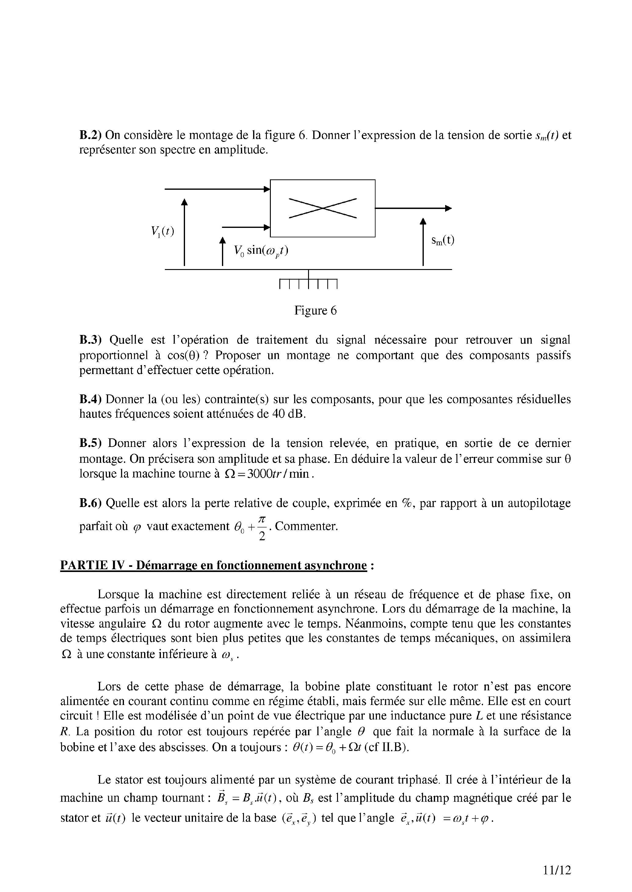 B.5) Donner alors l'expression de la tension relevée, en pratique, en sortie de ce dernier montage. On précisera son amplitude et sa phase. En déduire la valeur de l'erreur commise sur lorsque la machine tourne à .