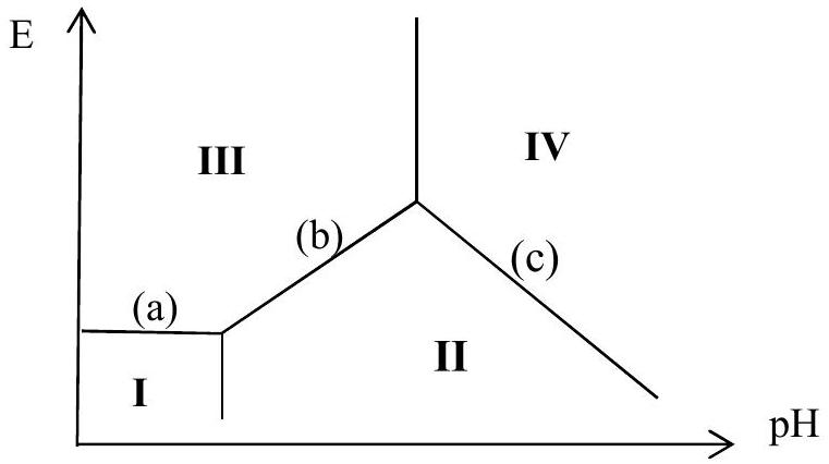 - Reproduire sur votre copie l'allure de ce diagramme E-pH en y plaçant les espèces numérotées de I à IV.