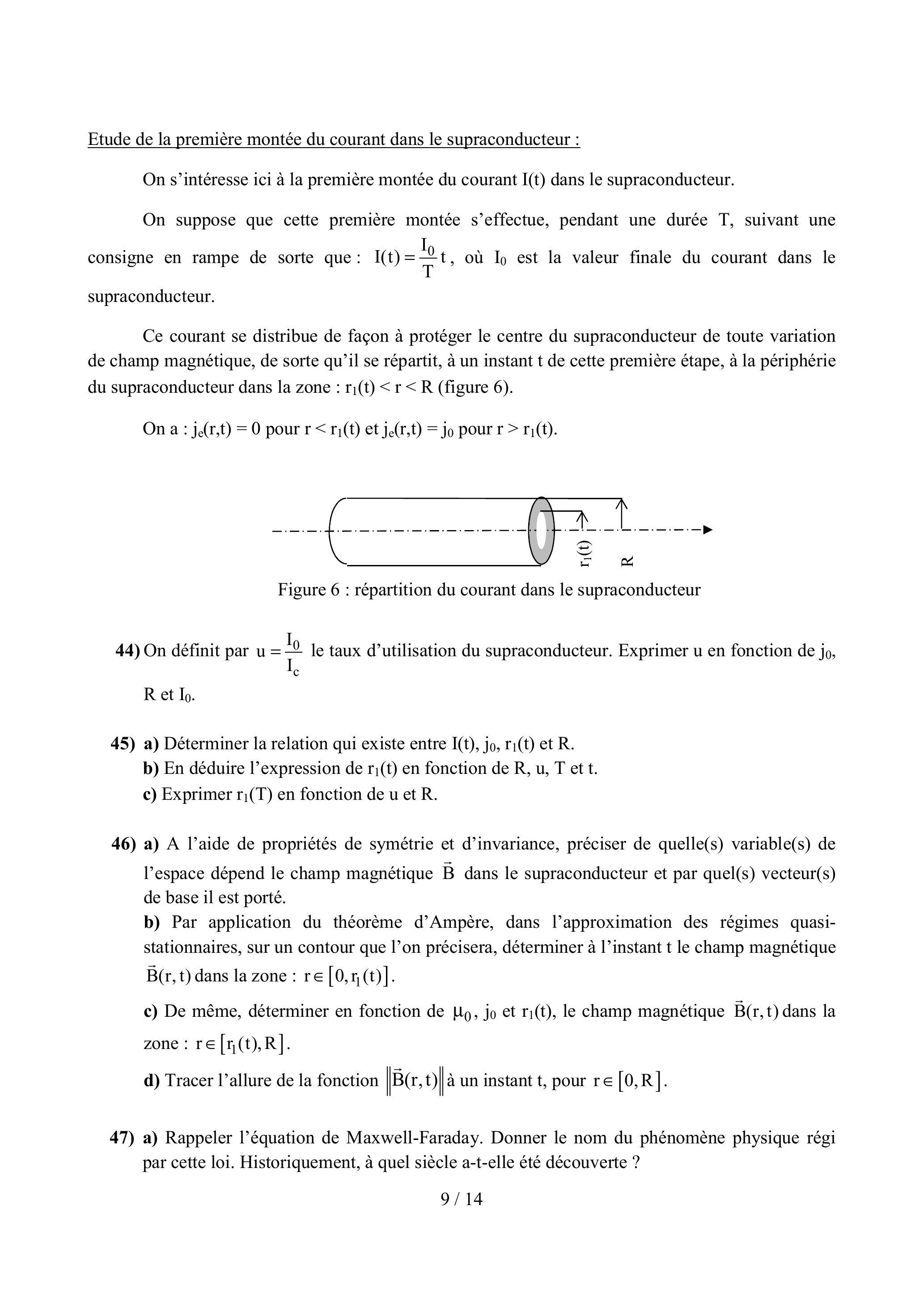 51) a) Par intégration sur le temps, déterminer l'énergie Q dissipée lors de la première montée du courant dans un supraconducteur de longueur