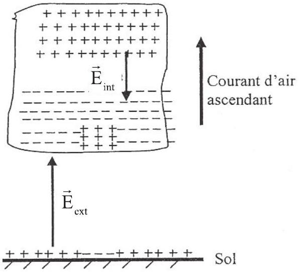 devient suffisamment grand, il provoque un claquage interne dans le nuage ; - un dipôle externe, généré entre la base du nuage et la surface de la Terre. Si le champ électrique externe