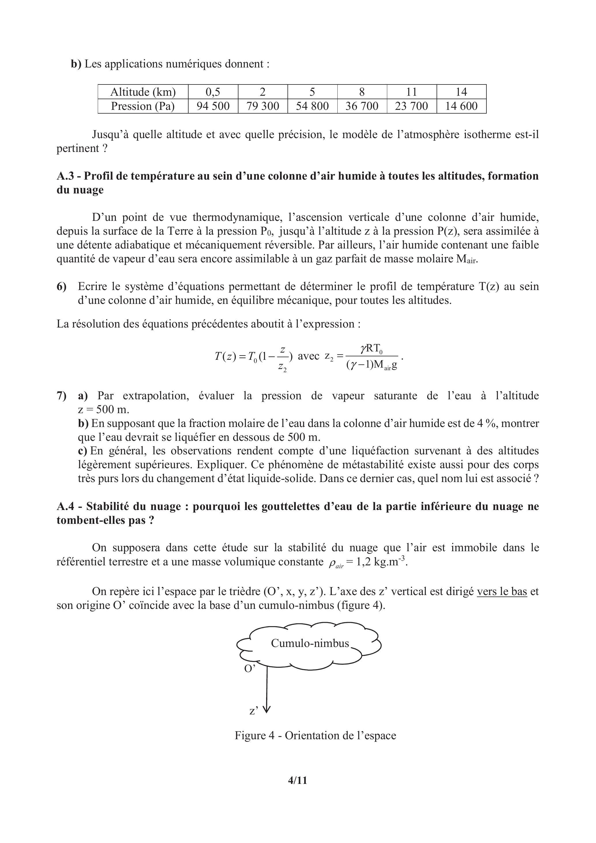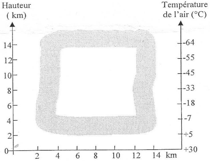 La température dans les basses couches de l'atmosphère n'est pas uniforme mais décroît avec l'altitude. Dans cette partie, on admettra que cette température suit une décroissance affine de la forme :