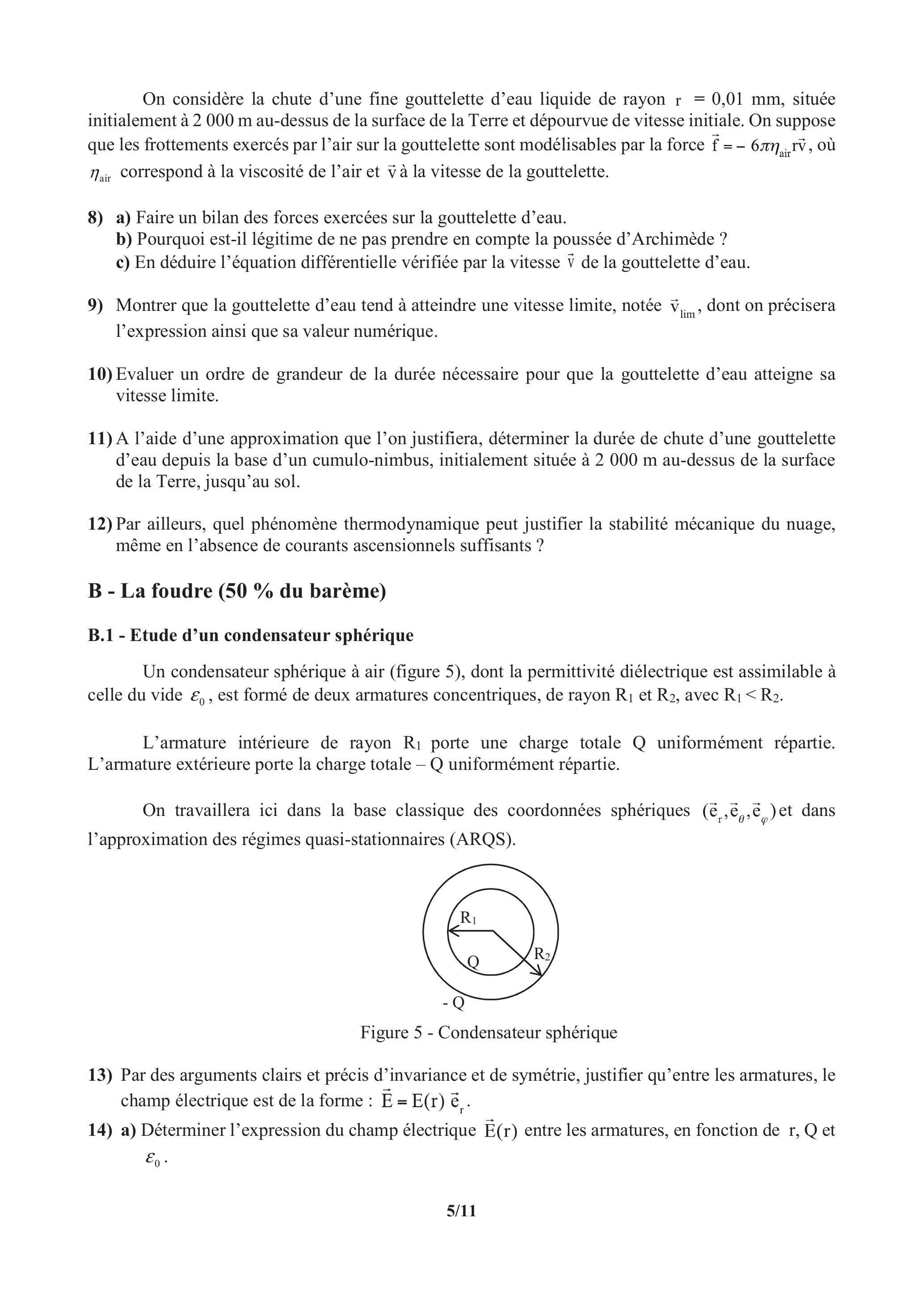 11) A l'aide d'une approximation que l'on justifiera, déterminer la durée de chute d'une gouttelette d'eau depuis la base d'un cumulo-nimbus, initialement située à 2000 m au-dessus de la surface de la Terre, jusqu'au sol.