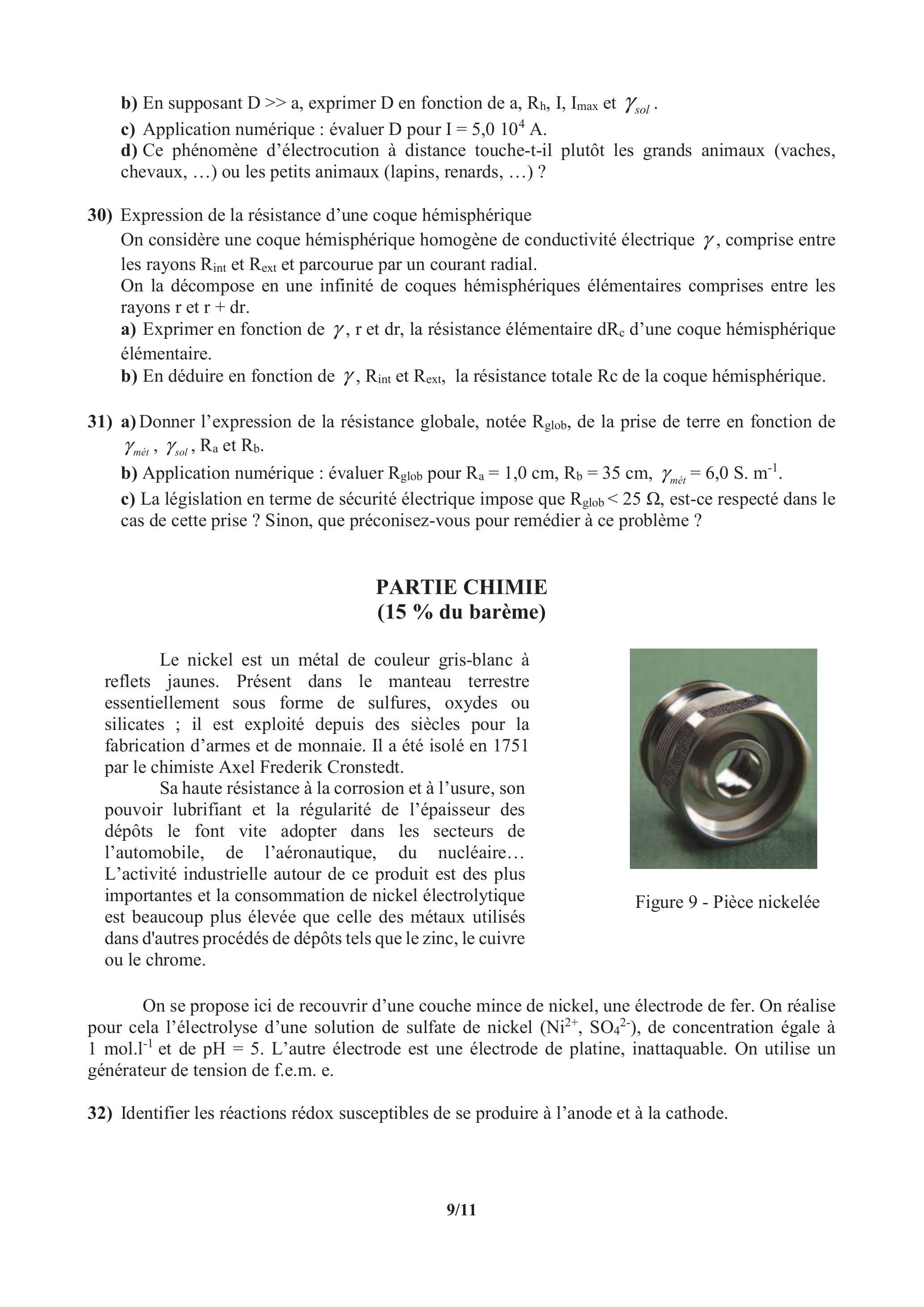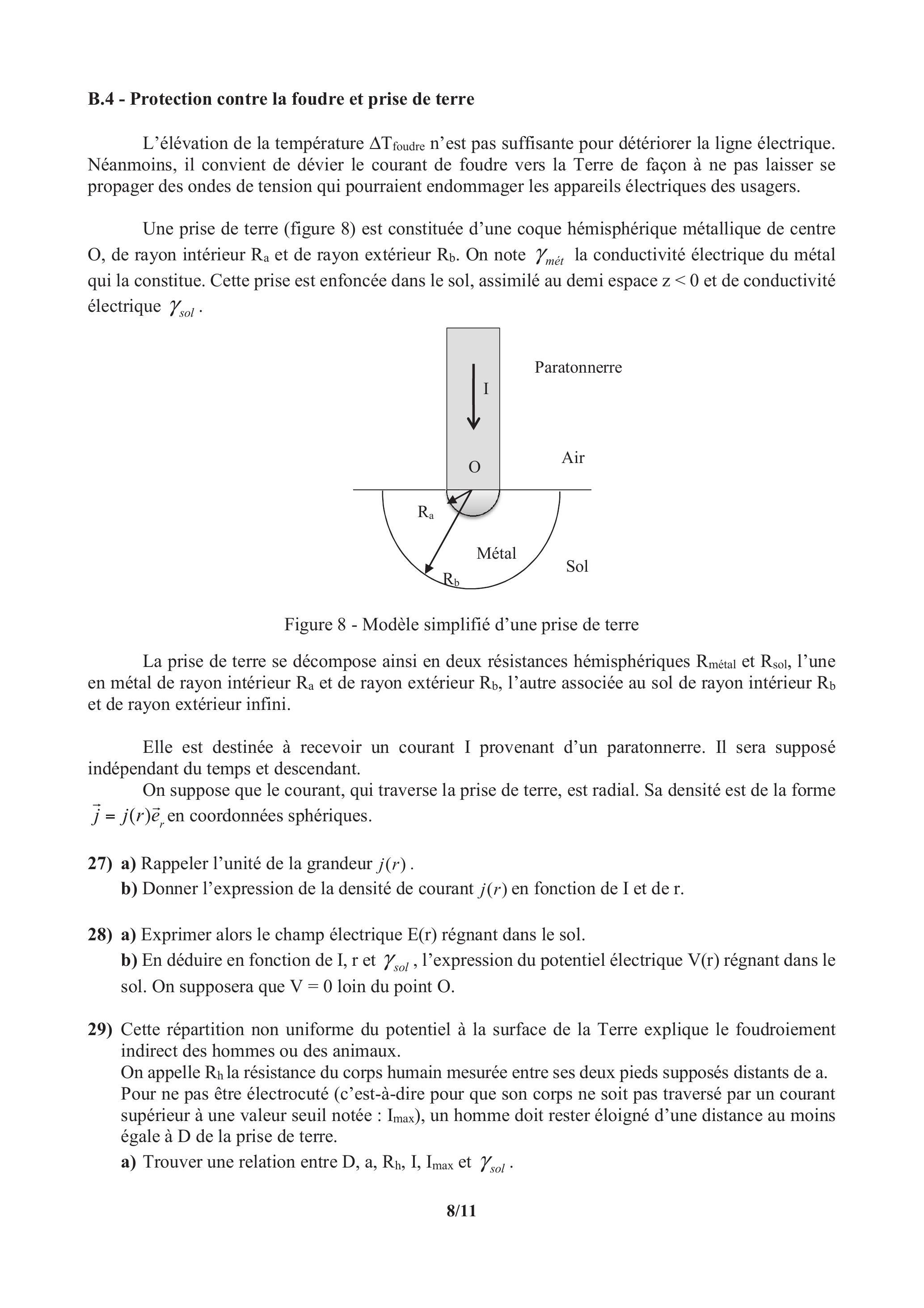 31) a) Donner l'expression de la résistance globale, notée , de la prise de terre en fonction de