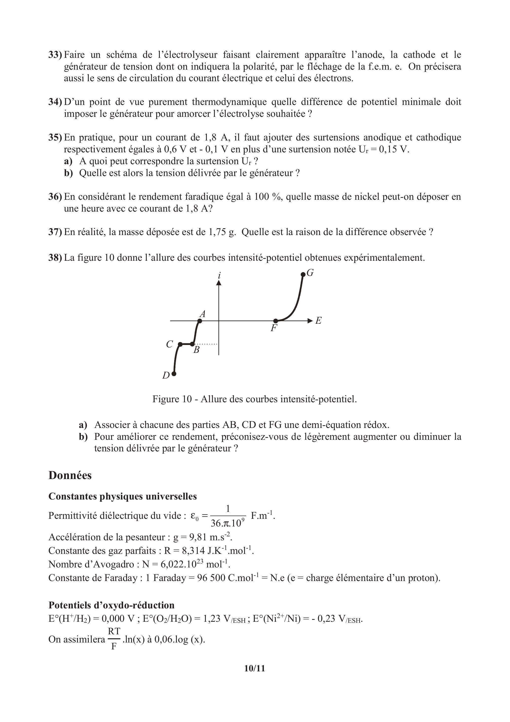 38) La figure 10 donne l'allure des courbes intensité-potentiel obtenues expérimentalement.