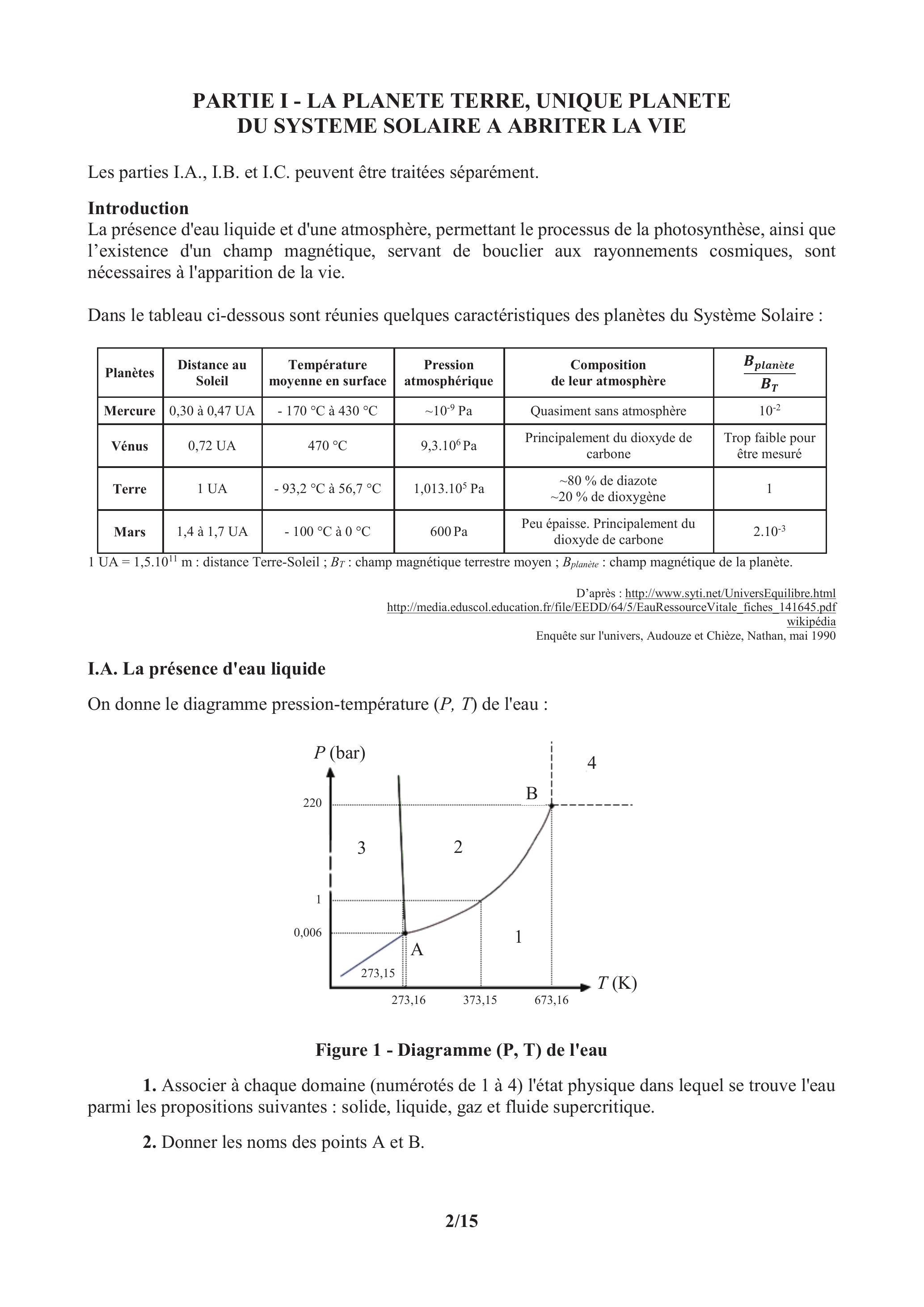 PARTIE I - LA PLANETE TERRE, UNIQUE PLANETE DU SYSTEME SOLAIRE A ABRITER LA VIE