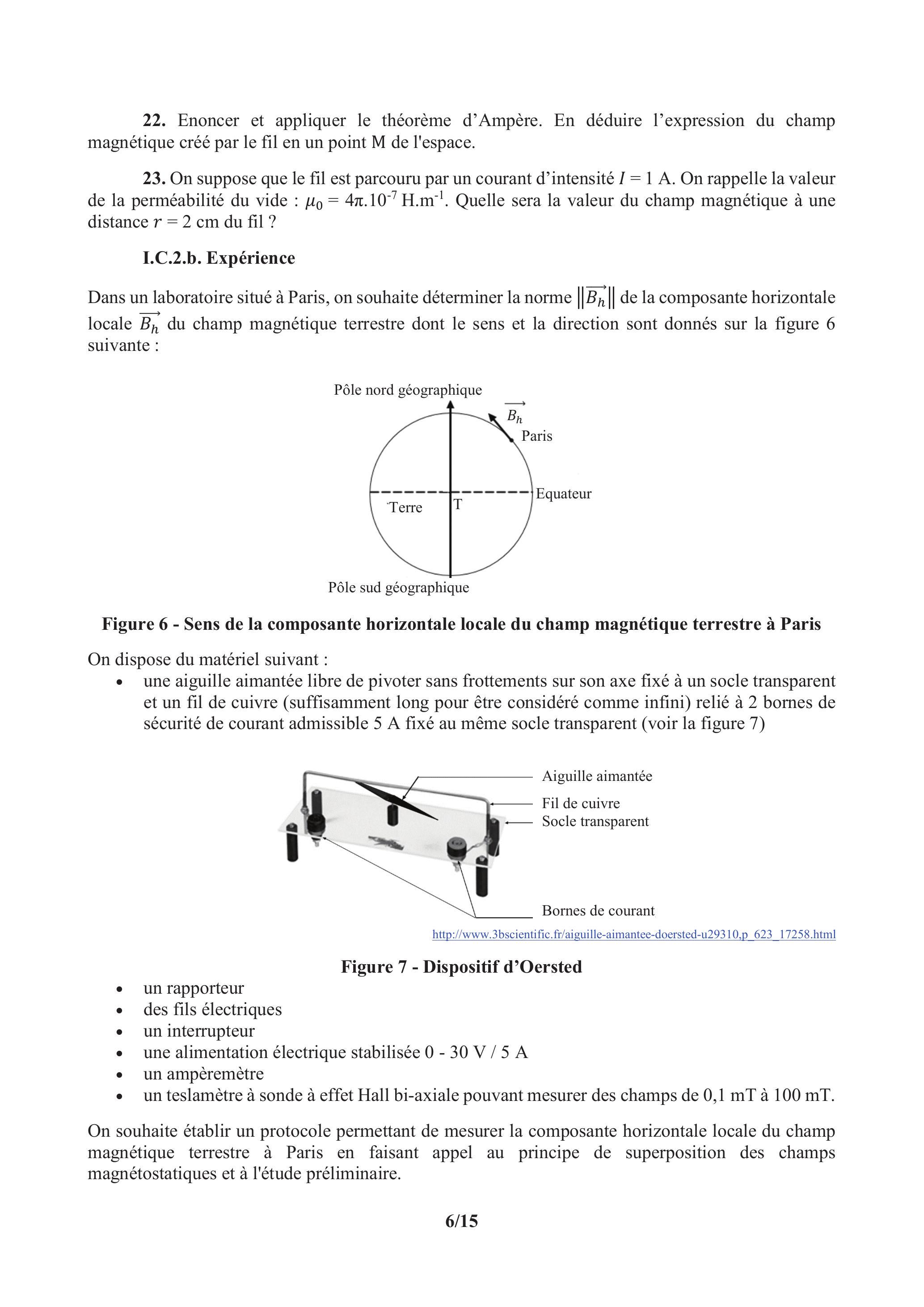On souhaite établir un protocole permettant de mesurer la composante horizontale locale du champ magnétique terrestre à Paris en faisant appel au principe de superposition des champs magnétostatiques et à l'étude préliminaire.