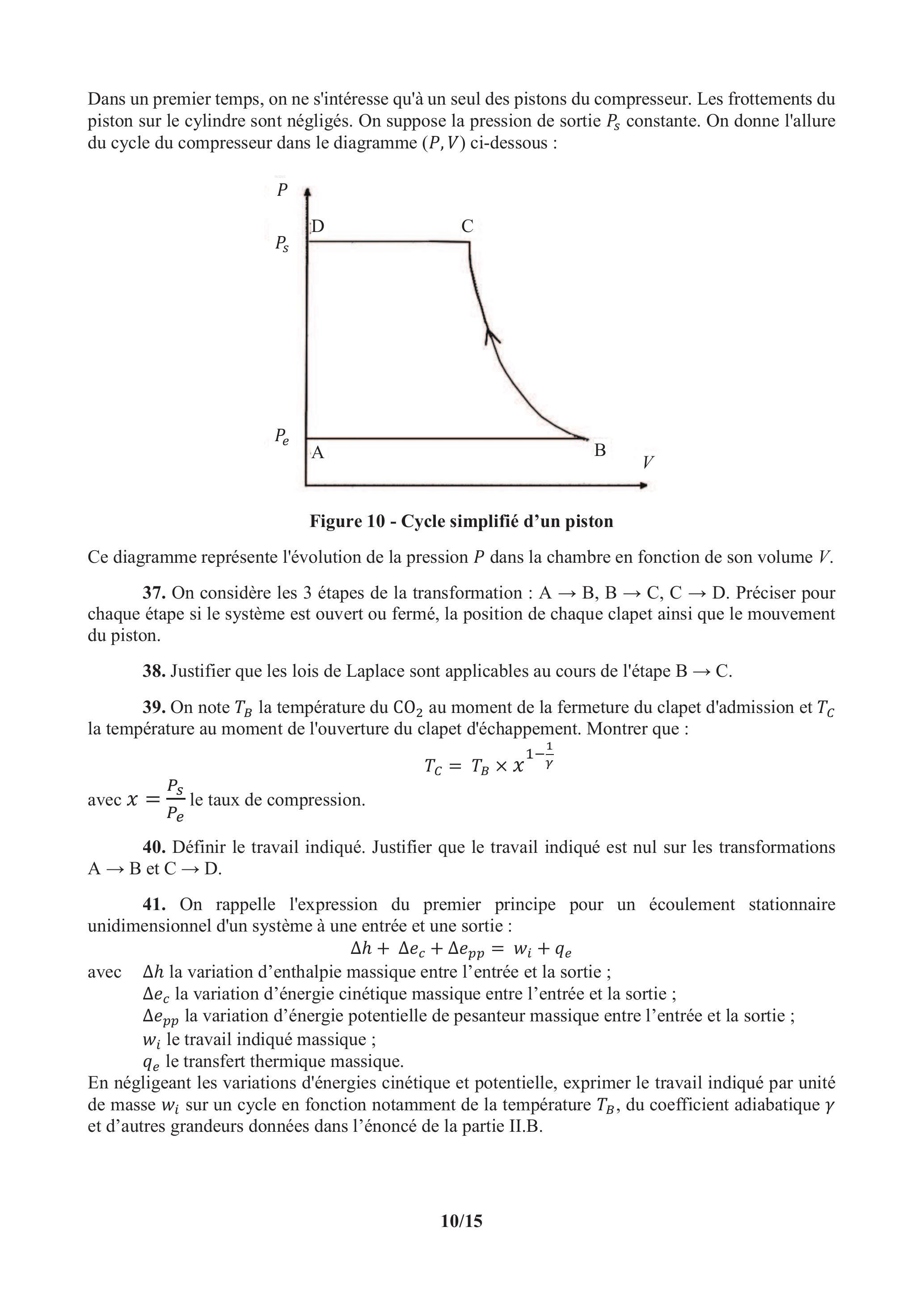 39. On note la température du au moment de la fermeture du clapet d'admission et la température au moment de l'ouverture du clapet d'échappement. Montrer que :
