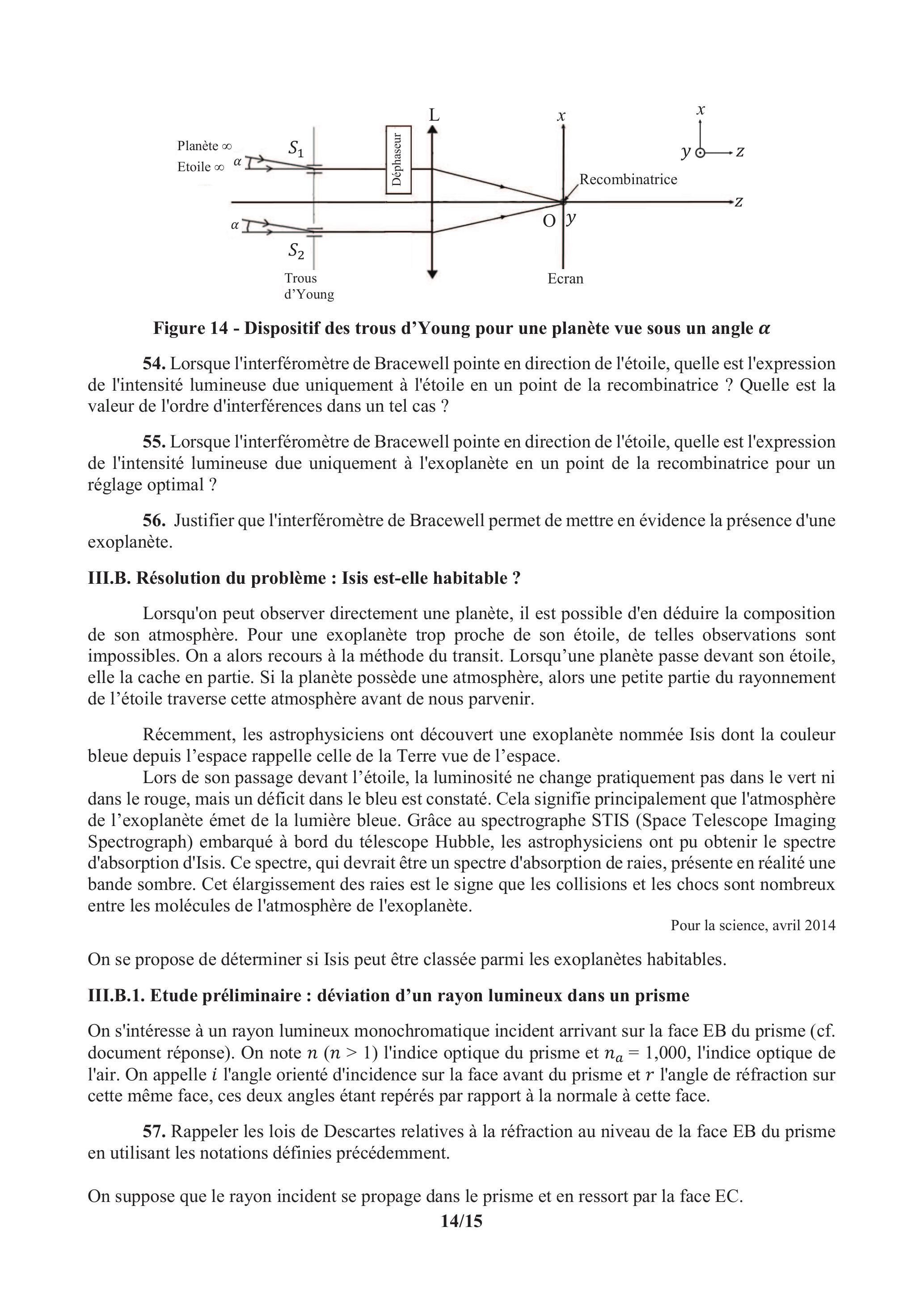 On se propose dans cette partie d'analyser une technique de détection d'exoplanètes faisant appel à l'interférométrie puis d'examiner l'atmosphère d'Isis pour déterminer si, du fait de sa couleur bleue, cela en fait une bonne candidate pour abriter la vie.