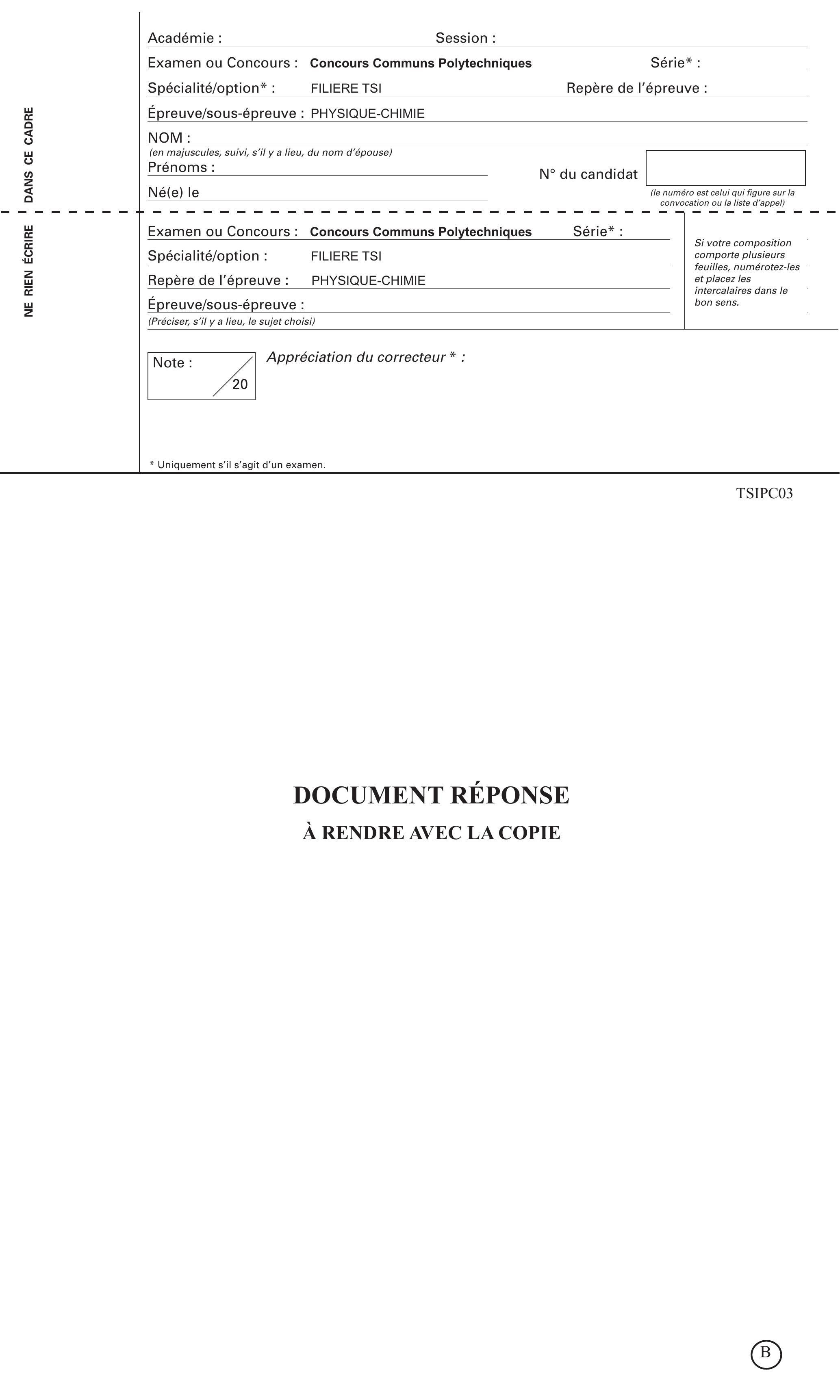 CCINP Physique Chimie TSI 2015 - Version Web LaTeX | WikiPrépa | WikiPrépa