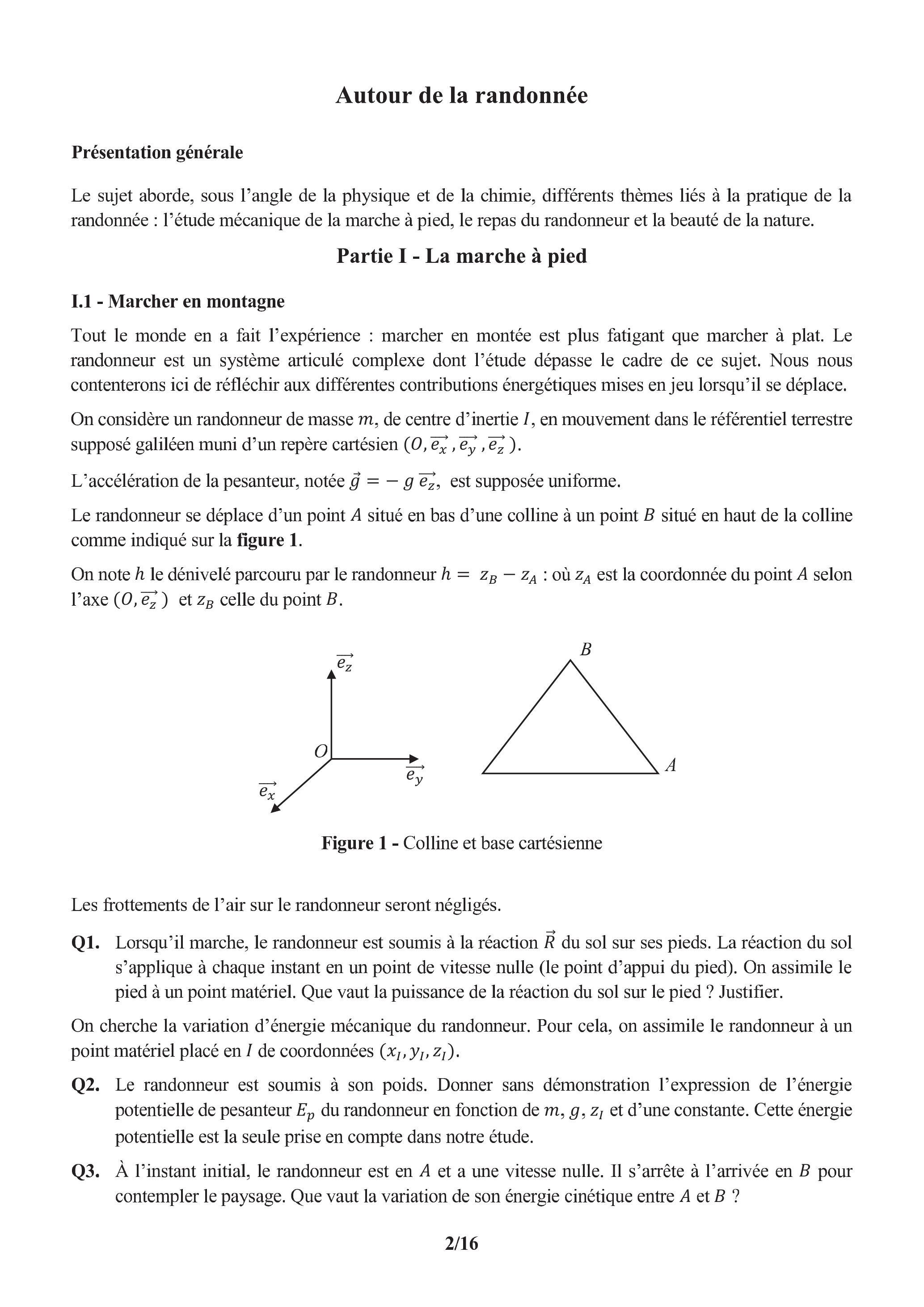 Le sujet aborde, sous l'angle de la physique et de la chimie, différents thèmes liés à la pratique de la randonnée : l'étude mécanique de la marche à pied, le repas du randonneur et la beauté de la nature.