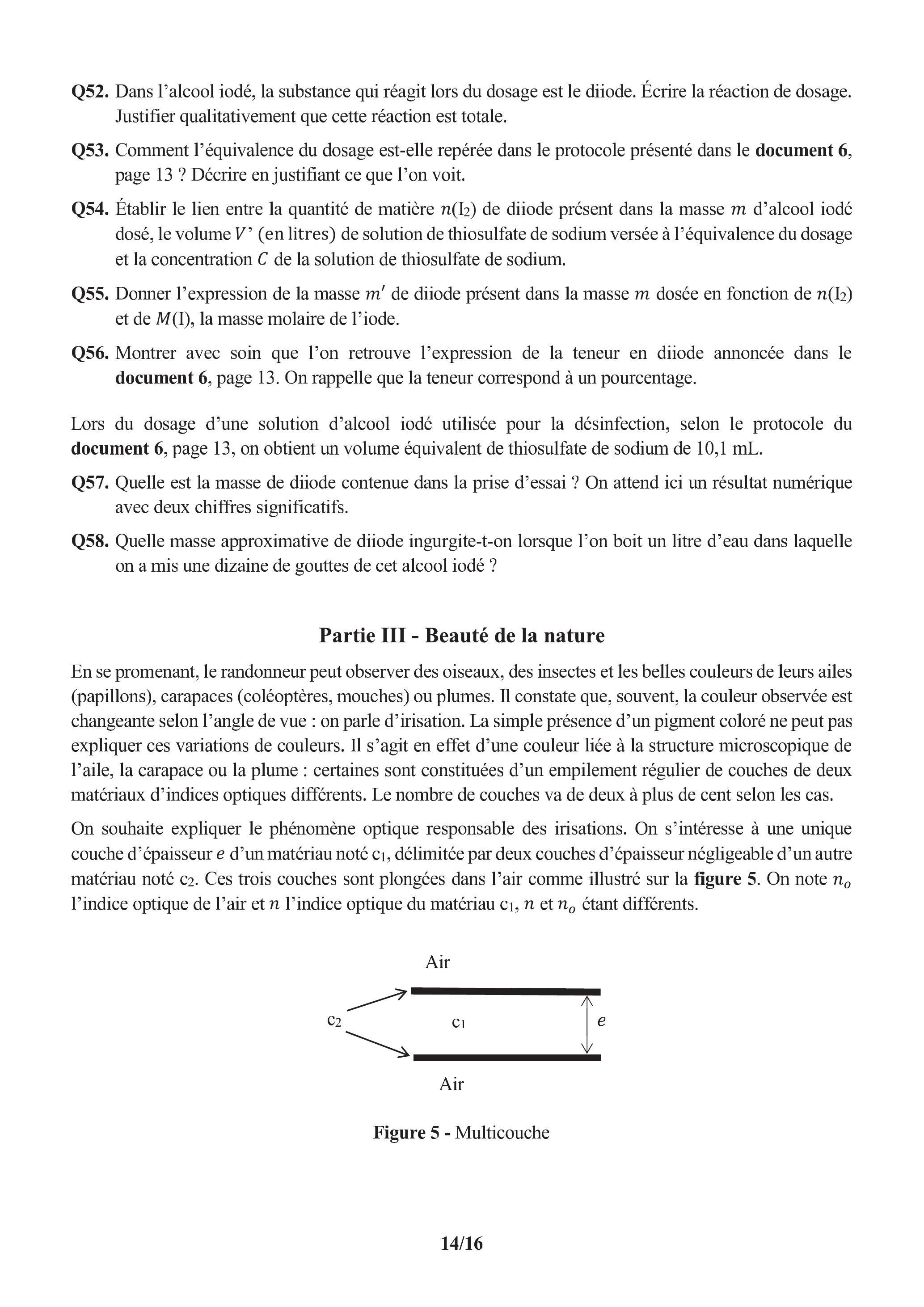 Q56. Montrer avec soin que l'on retrouve l'expression de la teneur en diiode annoncée dans le document 6, page 13. On rappelle que la teneur correspond à un pourcentage.