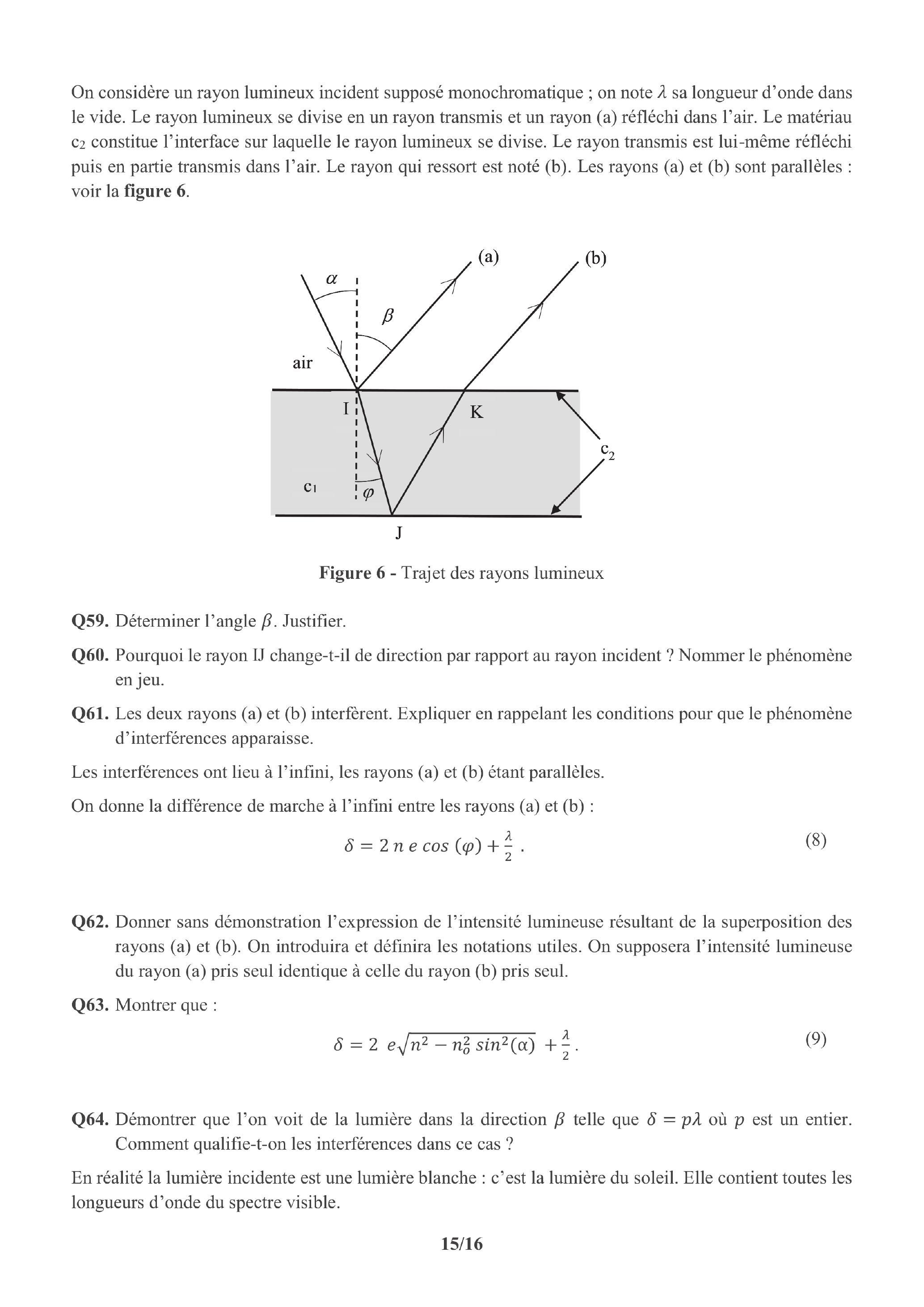 Q61. Les deux rayons (a) et (b) interfèrent. Expliquer en rappelant les conditions pour que le phénomène d'interférences apparaisse.
