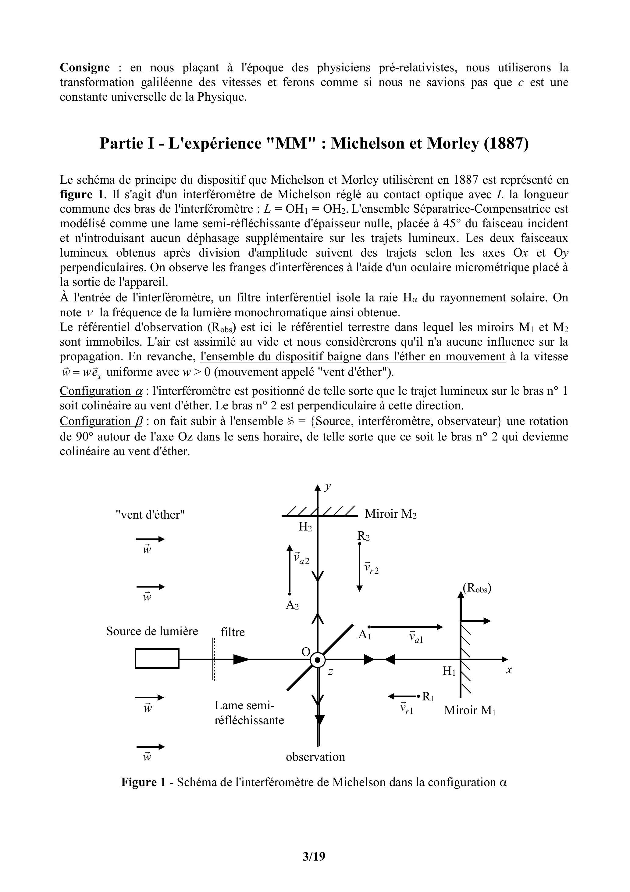 Les parties I et III de ce problème abordent deux expériences à propos de l'éther restées célèbres dans l'histoire des sciences.