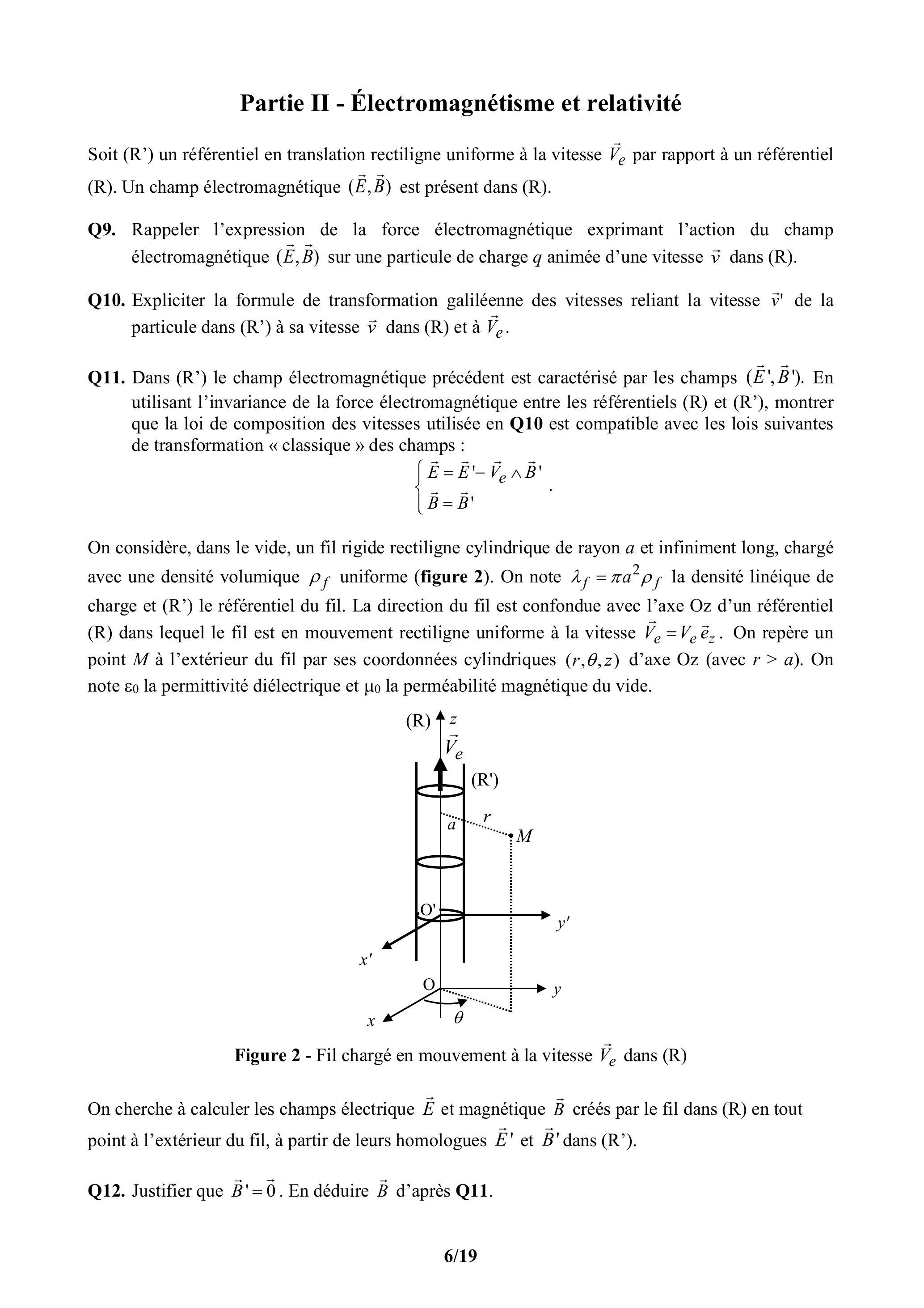 Q11. Dans (R') le champ électromagnétique précédent est caractérisé par les champs ( ). En utilisant l'invariance de la force électromagnétique entre les référentiels et '), montrer que la loi de composition des vitesses utilisée en Q10 est compatible avec les lois suivantes de transformation «classique» des champs :