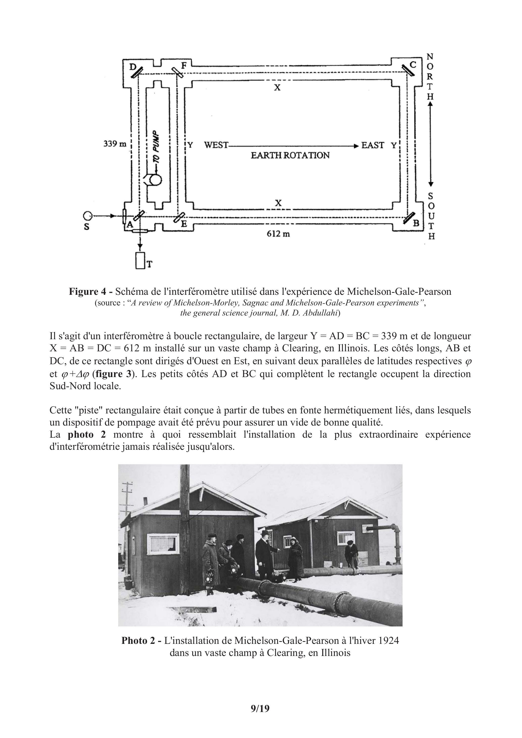 La figure 4 représente schématiquement le dispositif de Michelson-Gale-Pearson utilisé en 1924. Celui-ci s'inspire de l'interféromètre à boucle fermée utilisé par Sagnac en 1913.