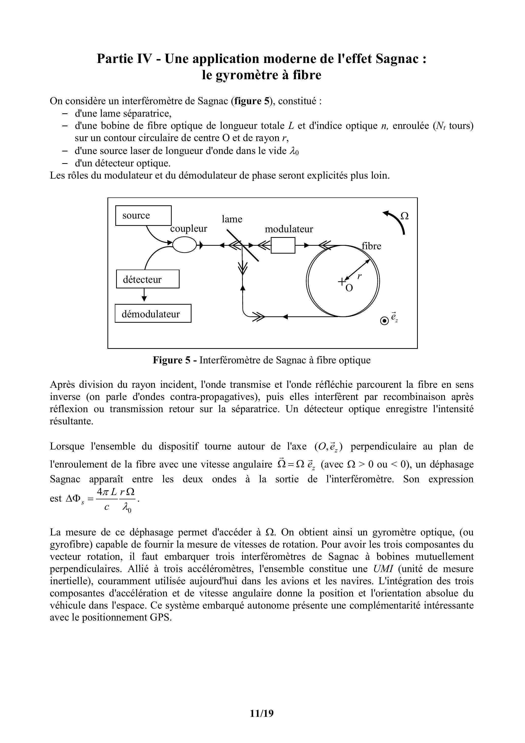 Enfin, la partie IV traite du gyromètre optique : une application moderne d'un effet relativiste découvert par Sagnac en 1913 qui affecte la lumière dans un référentiel tournant. L'étude se termine par une modélisation informatique d'un moyen de détection du déphasage produit.