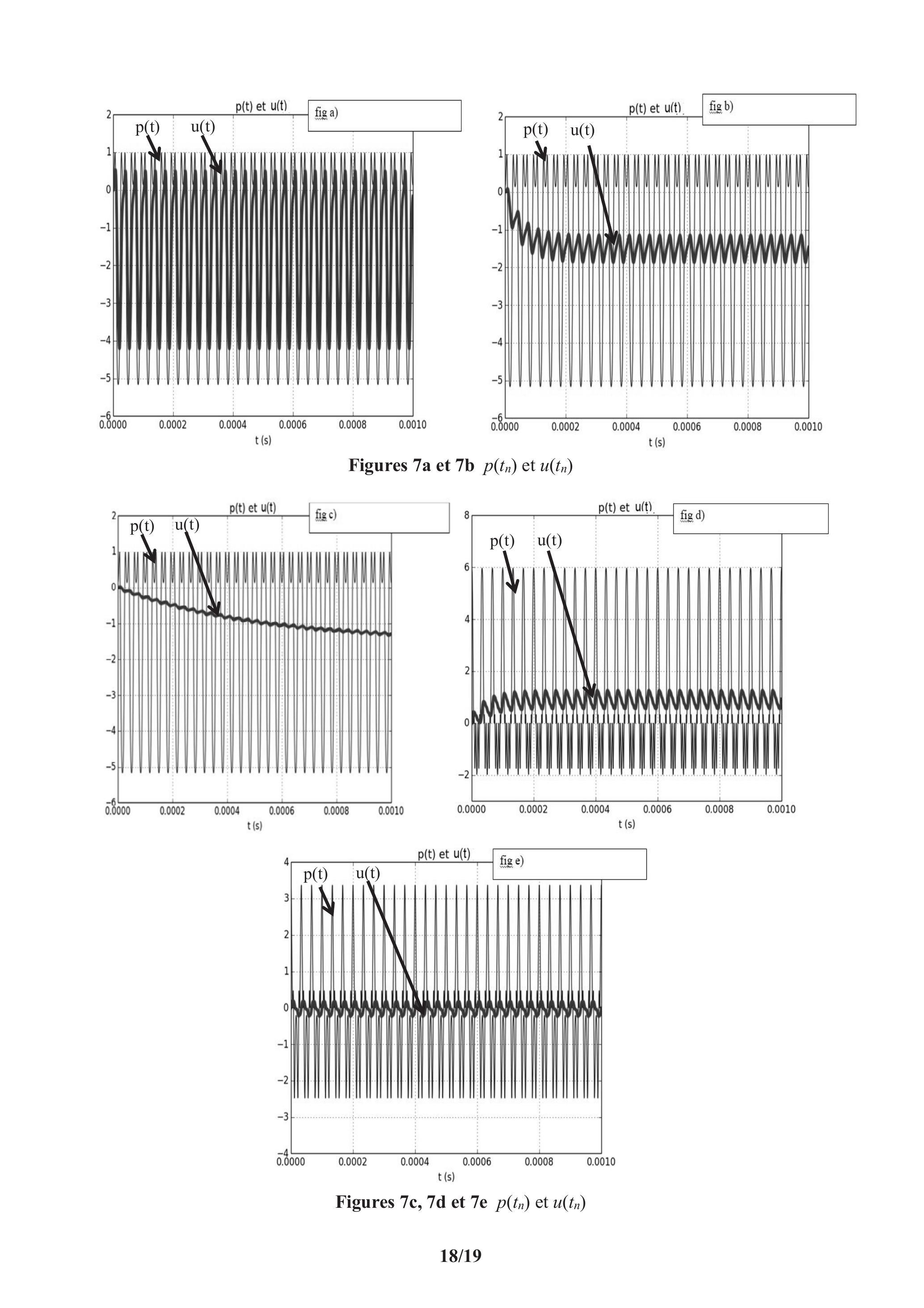 Q38. Pour la valeur de la question Q33, les figures 7a, b, c, d et e fournies en page 18 sont les représentations graphiques de et obtenues par la fonction RK. L'unité utilisée en ordonnée est le volt. Chaque figure correspond à un couple ( ) dont les valeurs sont regroupées dans le tableau 2.