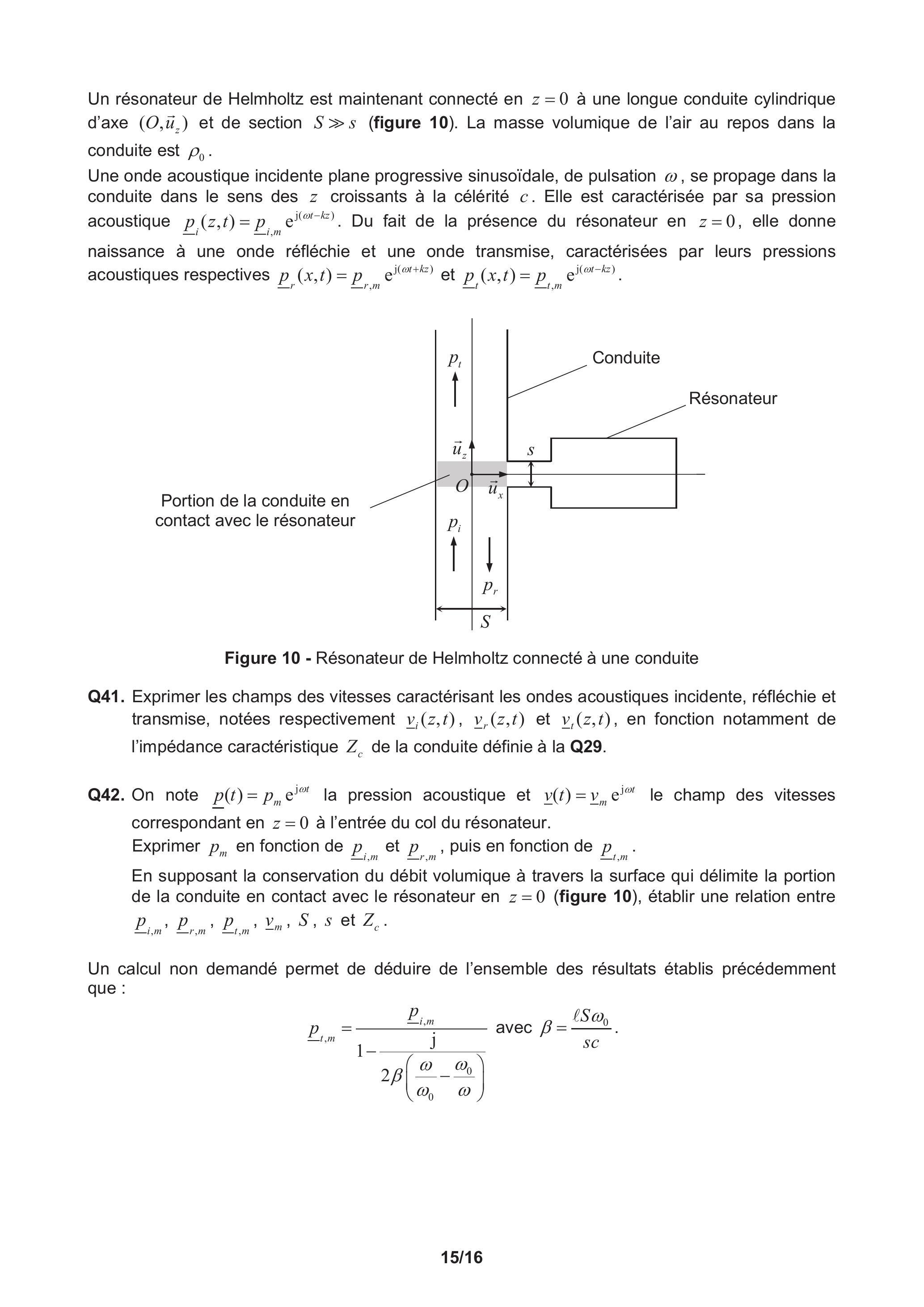 Un résonateur de Helmholtz est maintenant connecté en à une longue conduite cylindrique d'axe ( ) et de section (figure 10). La masse volumique de l'air au repos dans la conduite est .