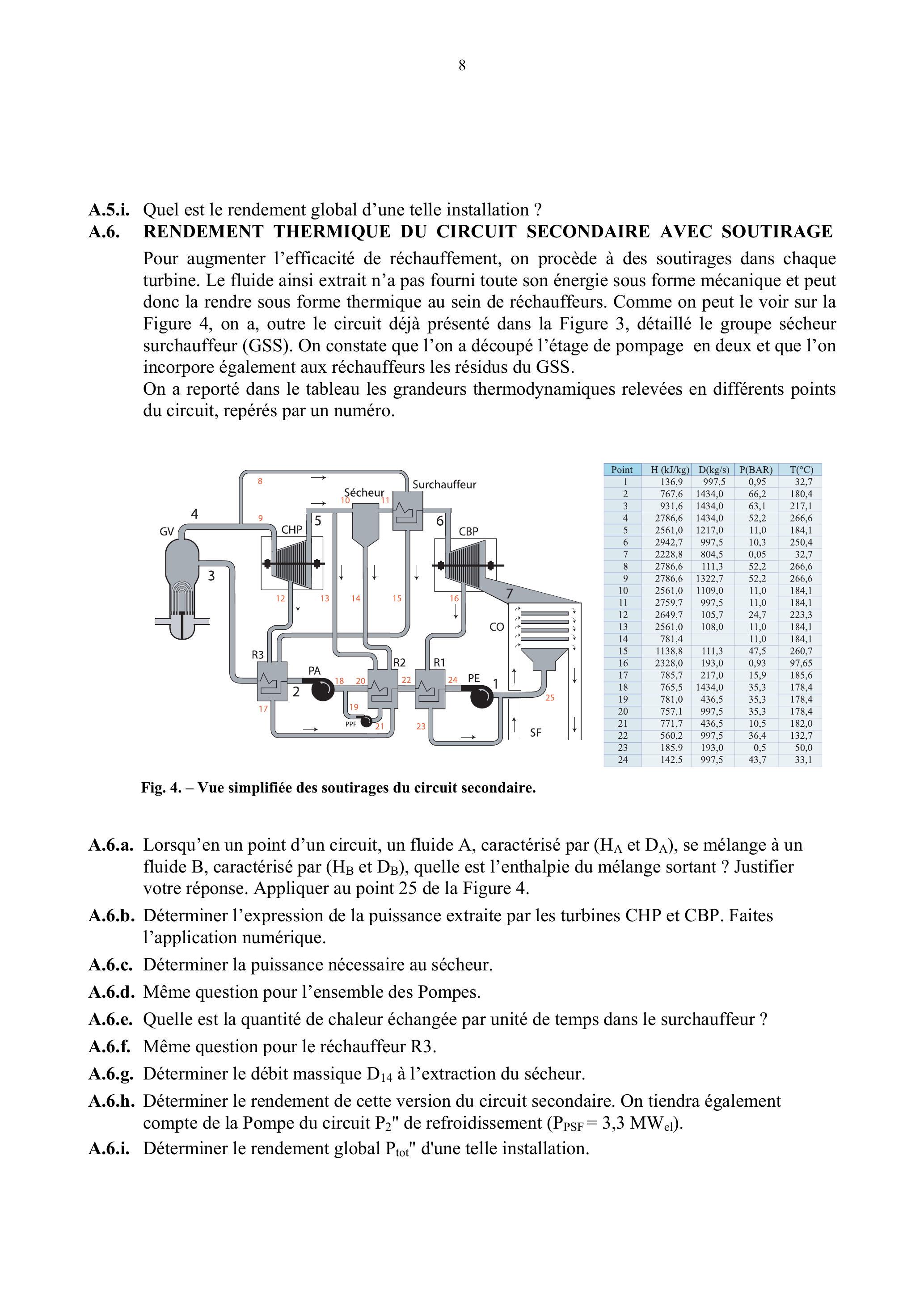 A.6.h. Déterminer le rendement de cette version du circuit secondaire. On tiendra également compte de la Pompe du circuit " de refroidissement ( ).