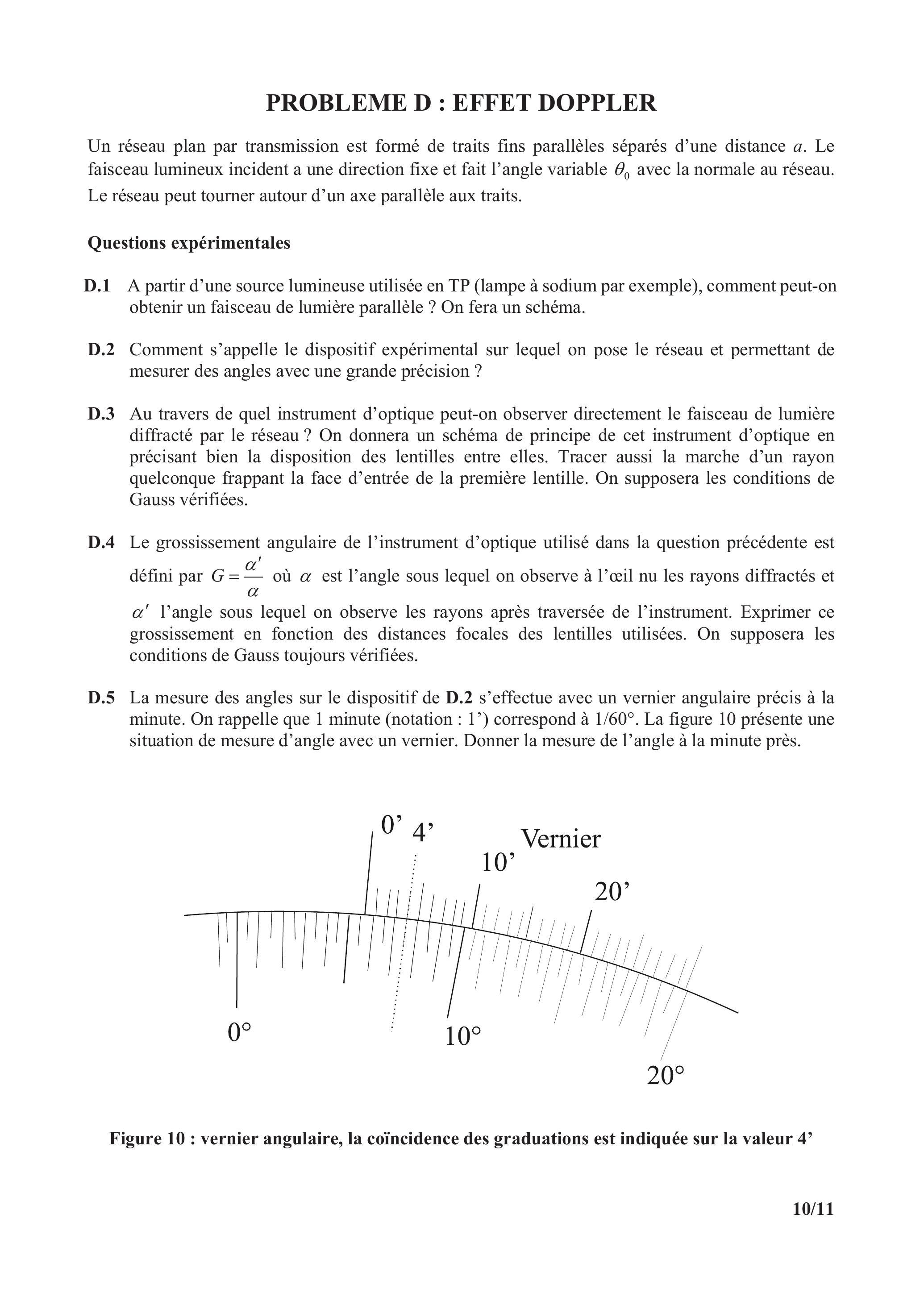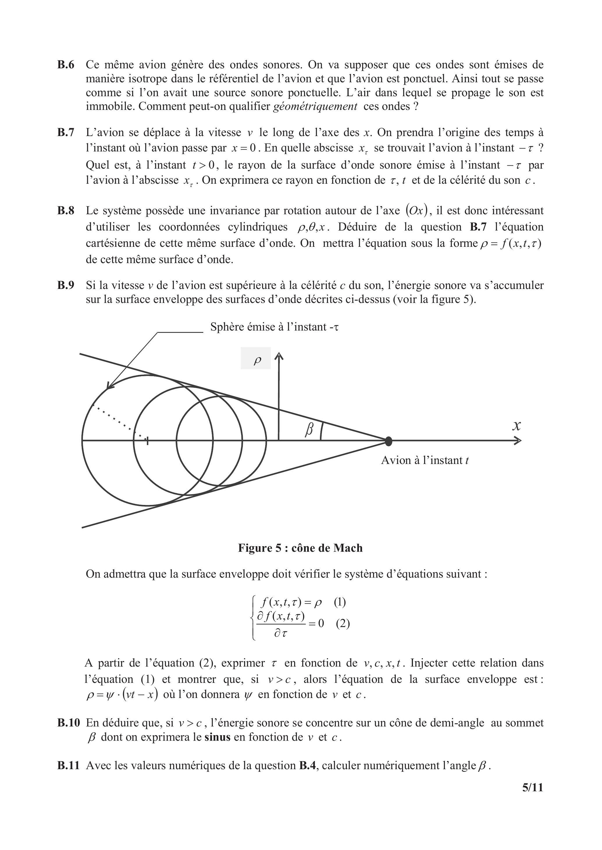 Cette épreuve comporte quatre problèmes totalement indépendants et portant sur la physique ondulatoire et les phénomènes qui se produisent quand la source de l'onde se déplace.