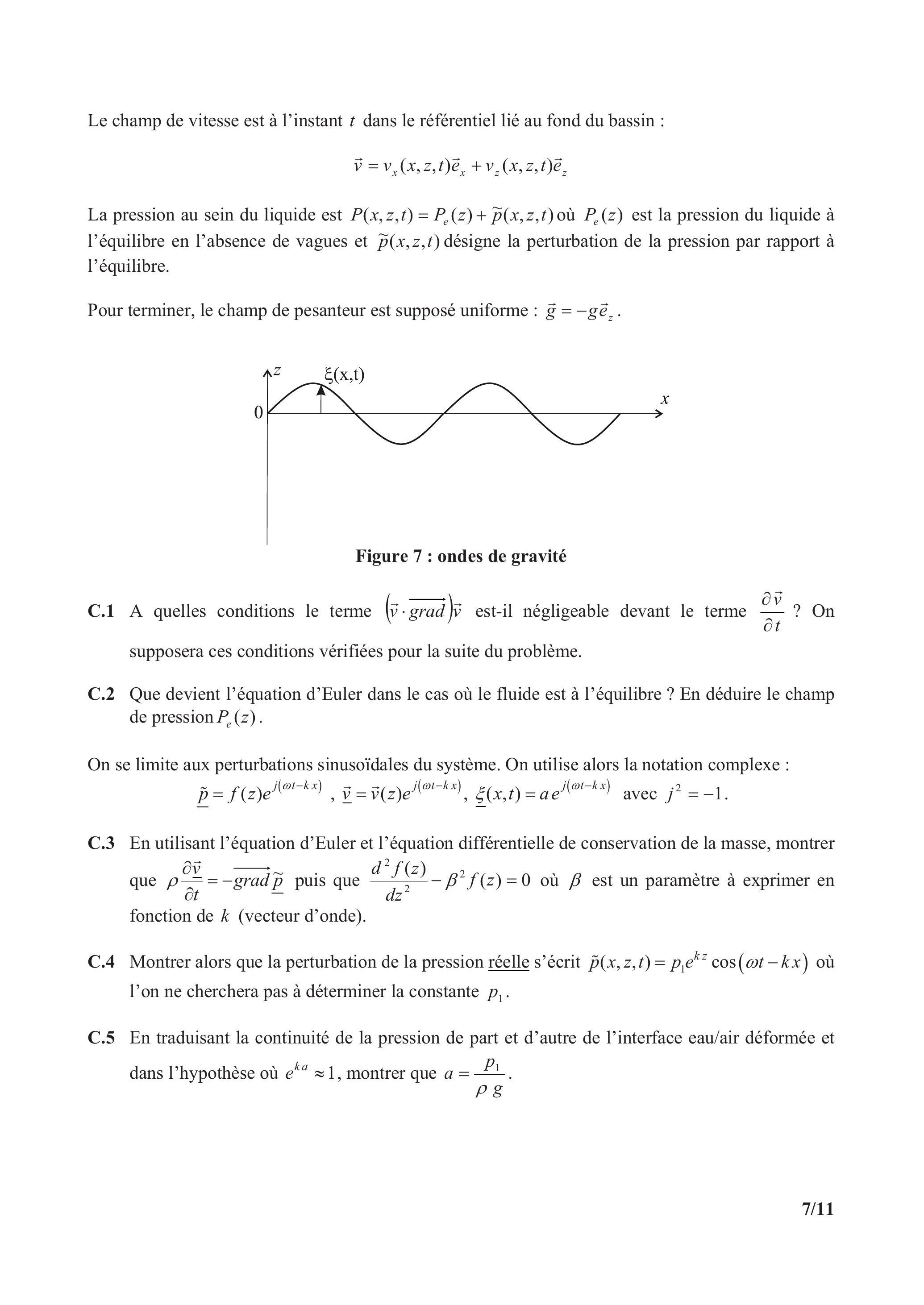 C. 3 En utilisant l'équation d'Euler et l'équation différentielle de conservation de la masse, montrer que puis que où est un paramètre à exprimer en fonction de (vecteur d'onde).