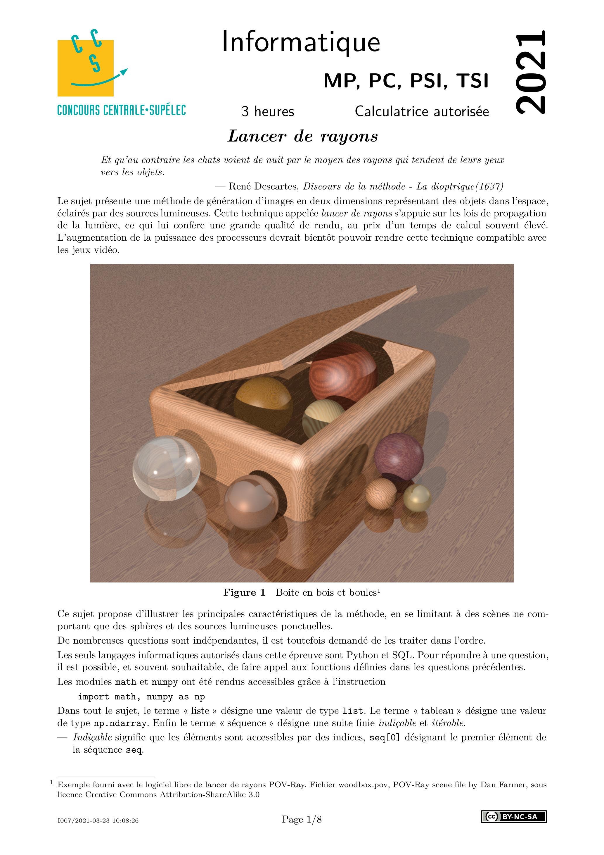 Centrale Informatique Commune MP PC PSI TSI 2021 - Version Web LaTeX | WikiPrépa | WikiPrépa