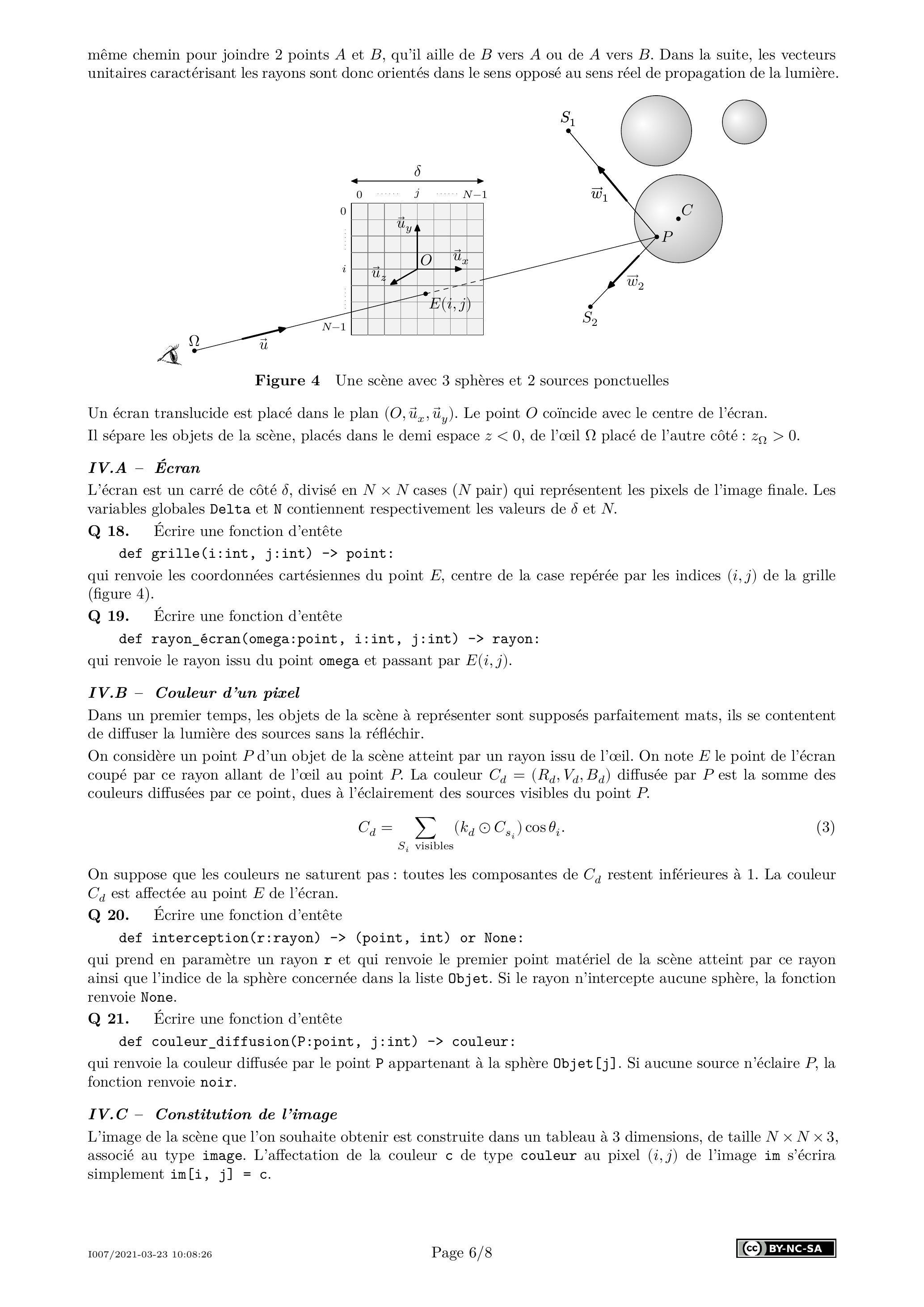 Cette partie implante l'algorithme qui génère l'image 2 D de la scène 3 D à visualiser. Pour représenter une scène en Python, on utilise les quatre variables globales suivantes :
