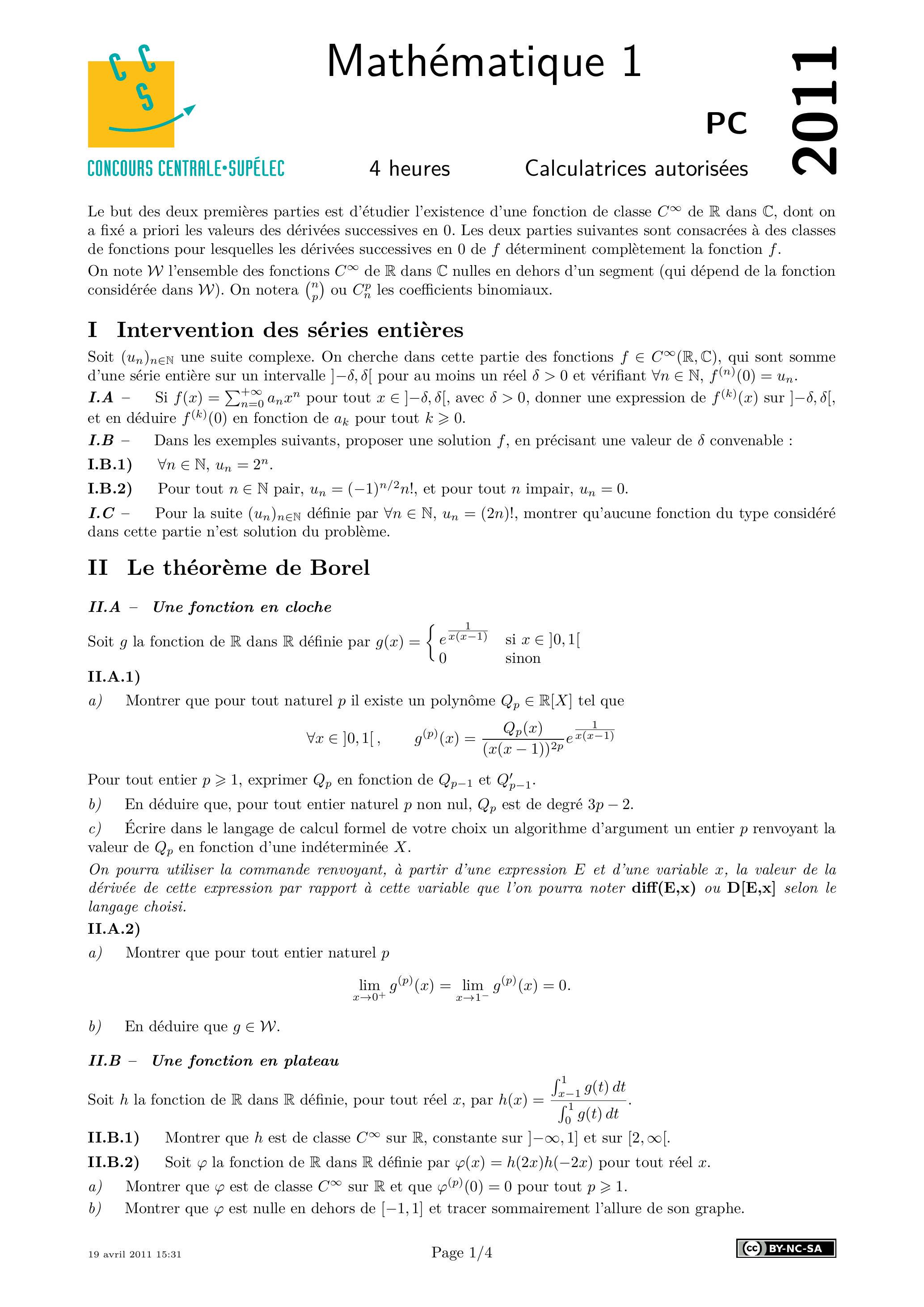 Centrale Mathématiques 1 PC 2011 - Version Web LaTeX | WikiPrépa | WikiPrépa