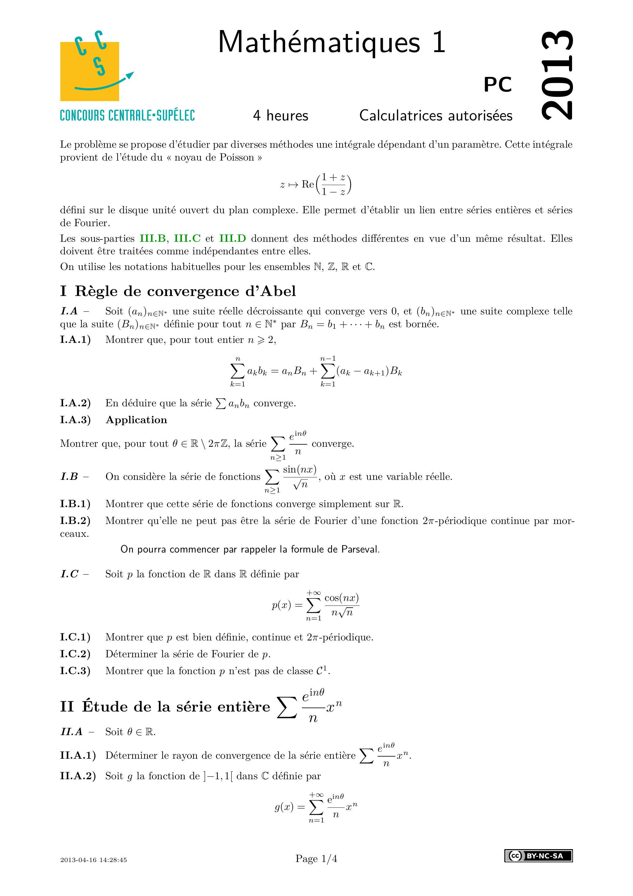 Le problème se propose d'étudier par diverses méthodes une intégrale dépendant d'un paramètre. Cette intégrale provient de l'étude du « noyau de Poisson »