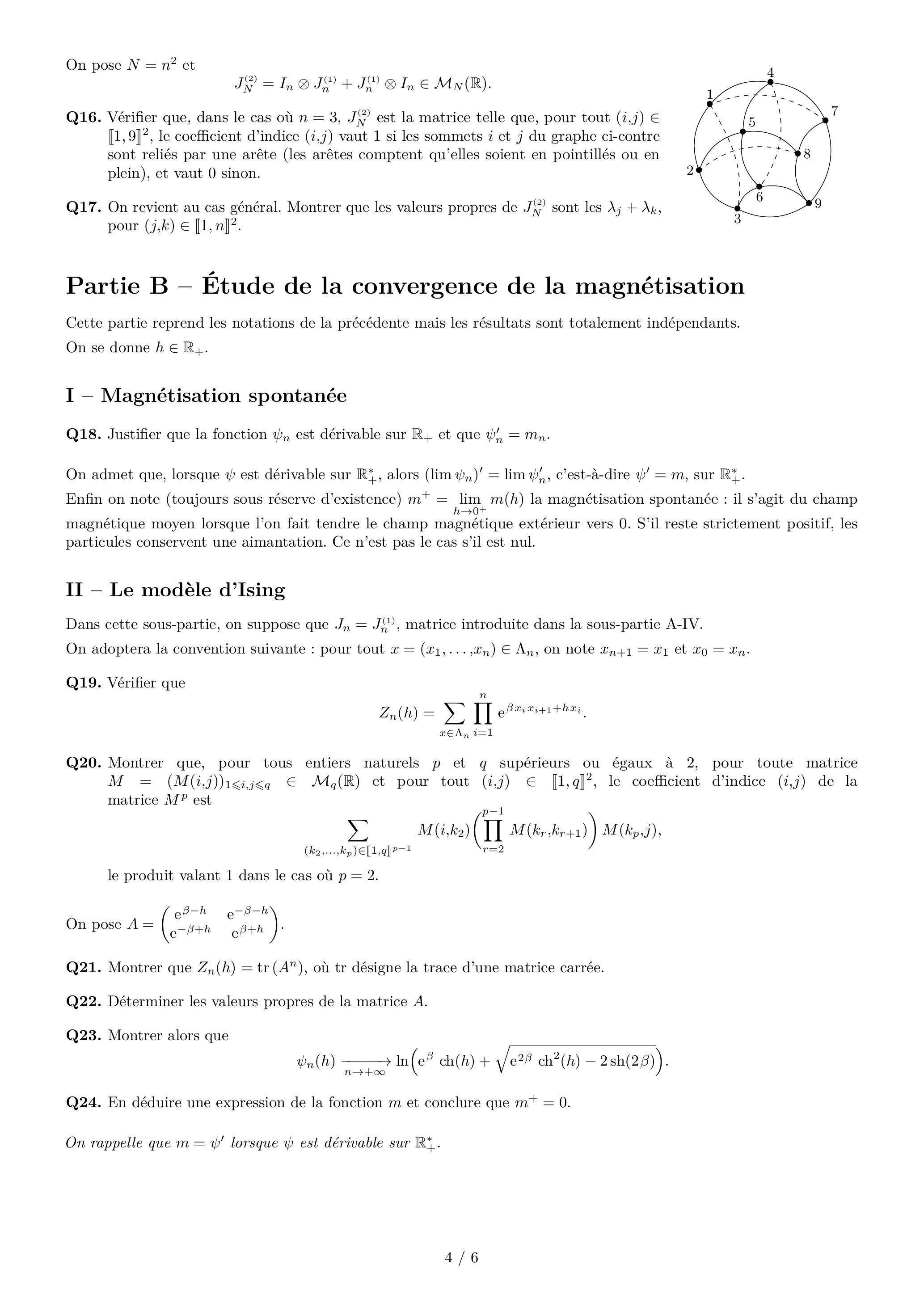 La partie B utilise des notations introduites dans la première mais en est totalement indépendante. Elle consiste en l'étude de la convergence de la magnétisation. Elle est elle-même découpée en quatre sous-parties.