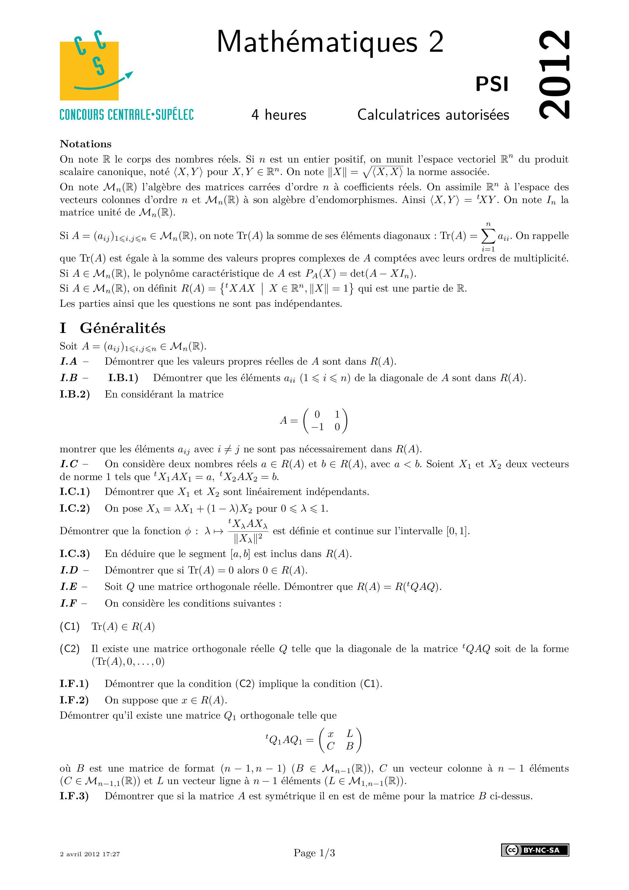 I.F.5) En déduire que si est symétrique, la condition (C1) implique la condition (C2)