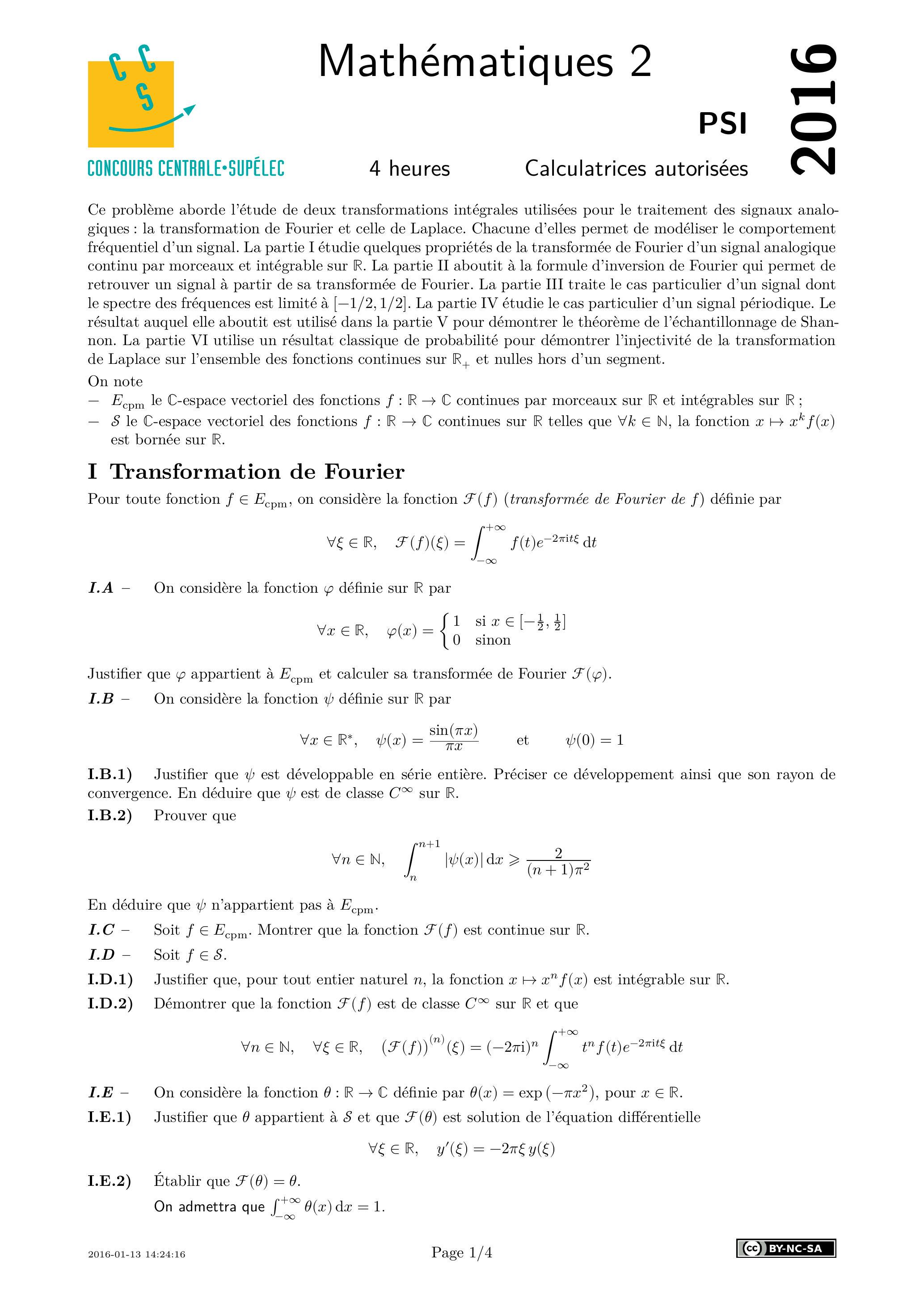 Centrale Mathématiques 2 PSI 2016 - Version Web LaTeX | WikiPrépa | WikiPrépa
