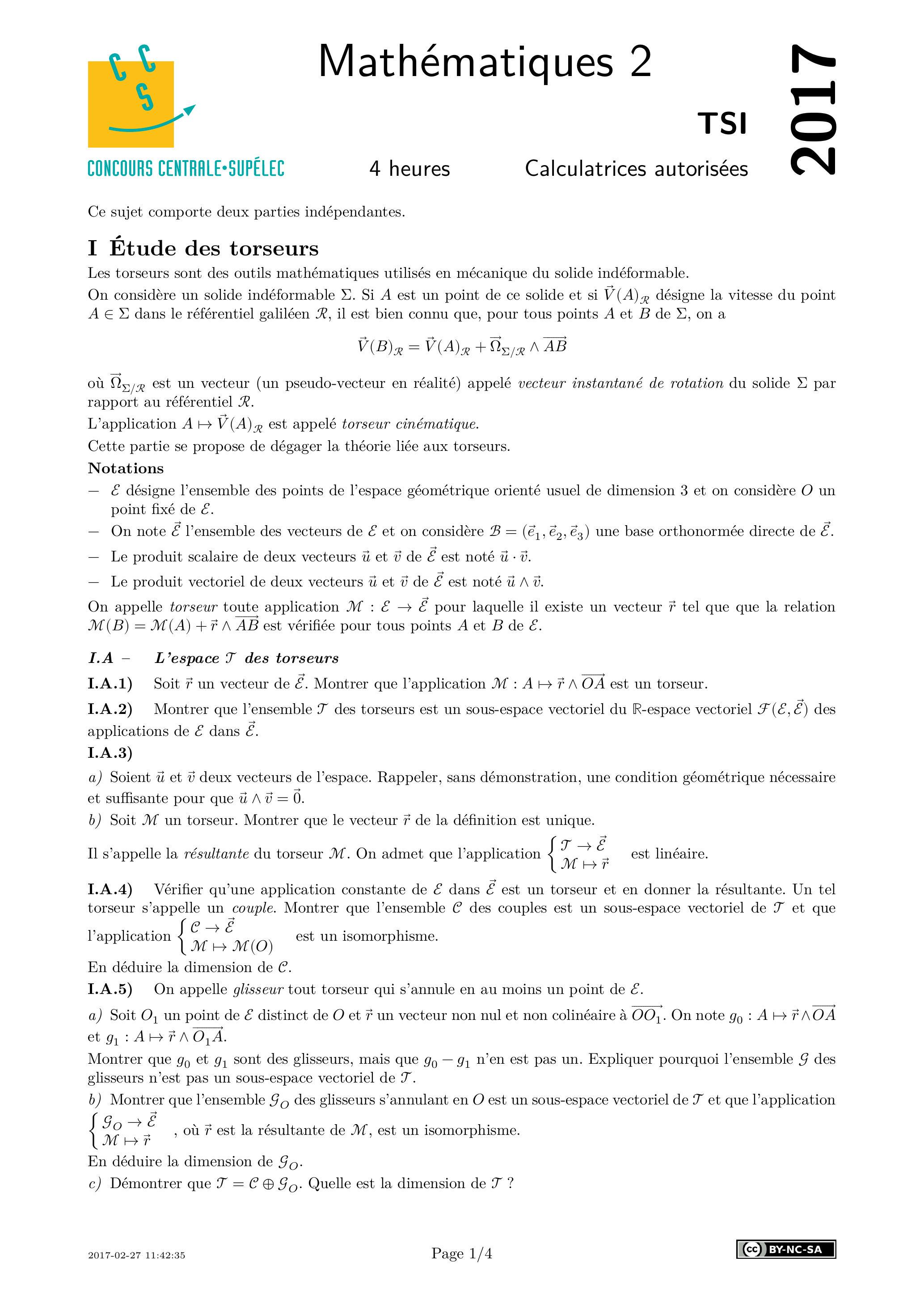 Centrale Mathématiques 2 TSI 2017 - Version Web LaTeX | WikiPrépa | WikiPrépa