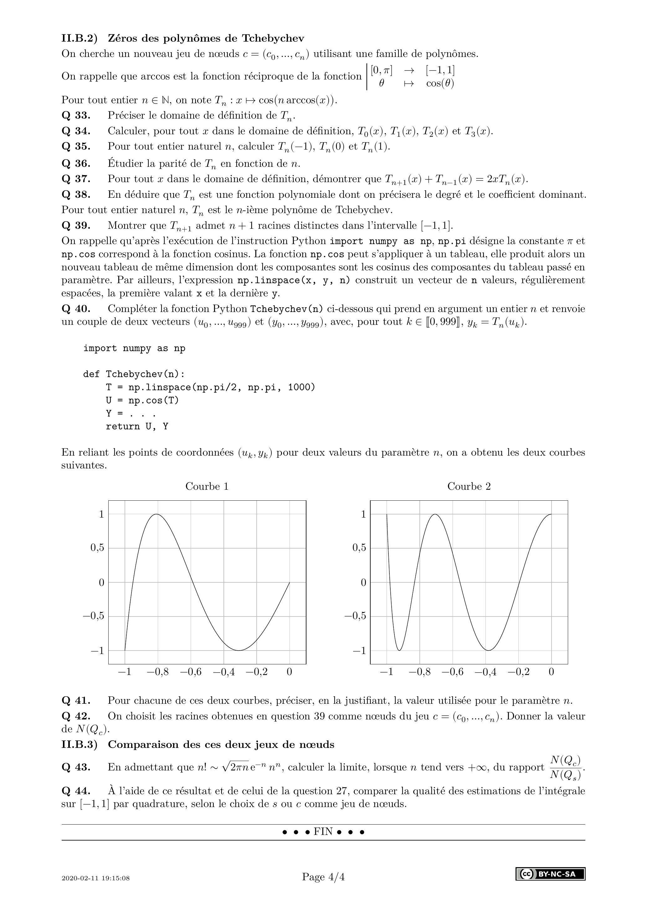 Q 38. En déduire que est une fonction polynomiale dont on précisera le degré et le coefficient dominant. Pour tout entier naturel est le -ième polynôme de Tchebychev.