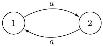 - On considère la machine représentée figure 2. Donner un mot synchronisant pour s'il en existe un. Justifier la réponse.
