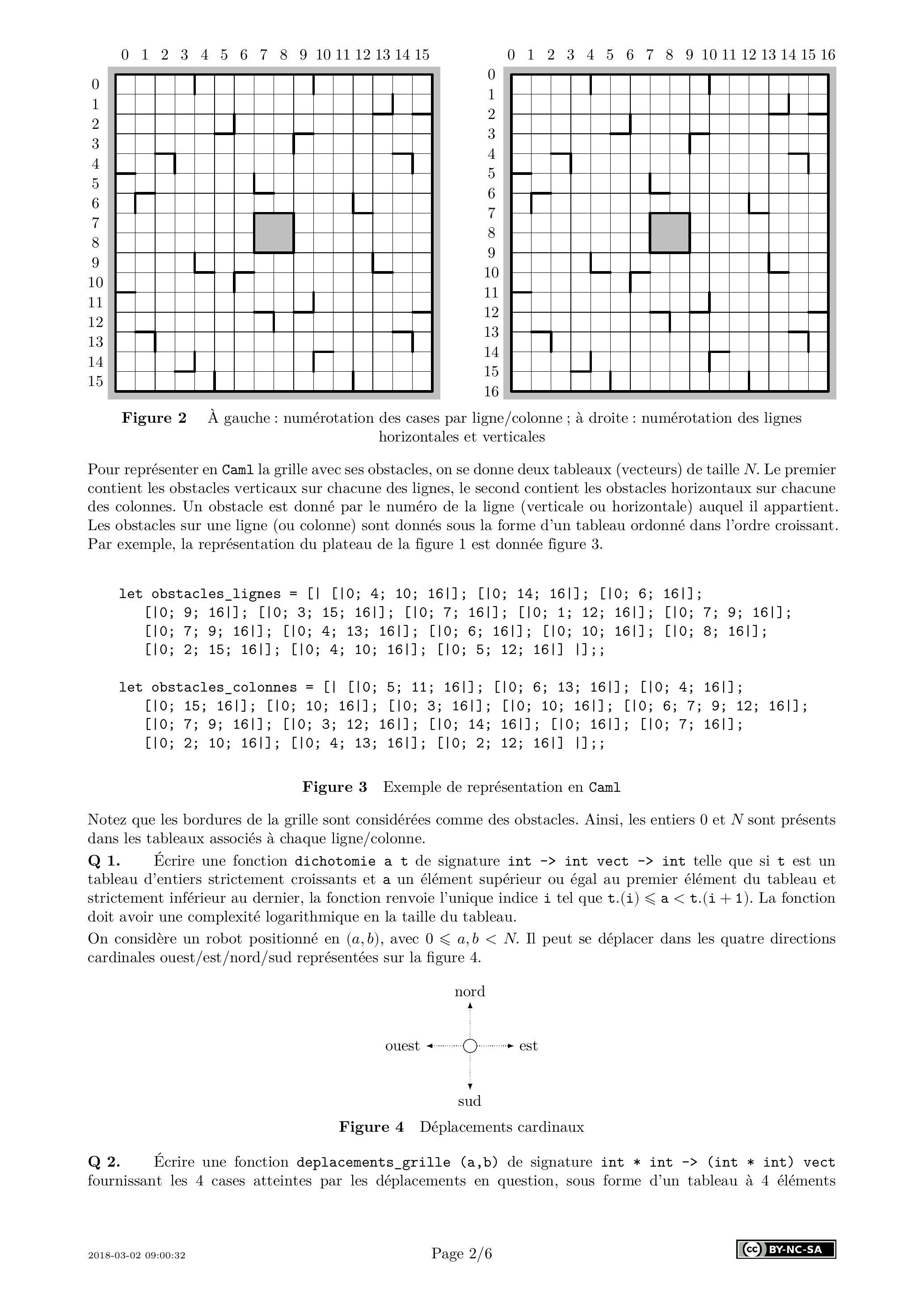 Pour représenter en Caml la grille avec ses obstacles, on se donne deux tableaux (vecteurs) de taille