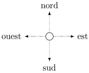 . Il peut se déplacer dans les quatre directions cardinales ouest/est/nord/sud représentées sur la figure 4.