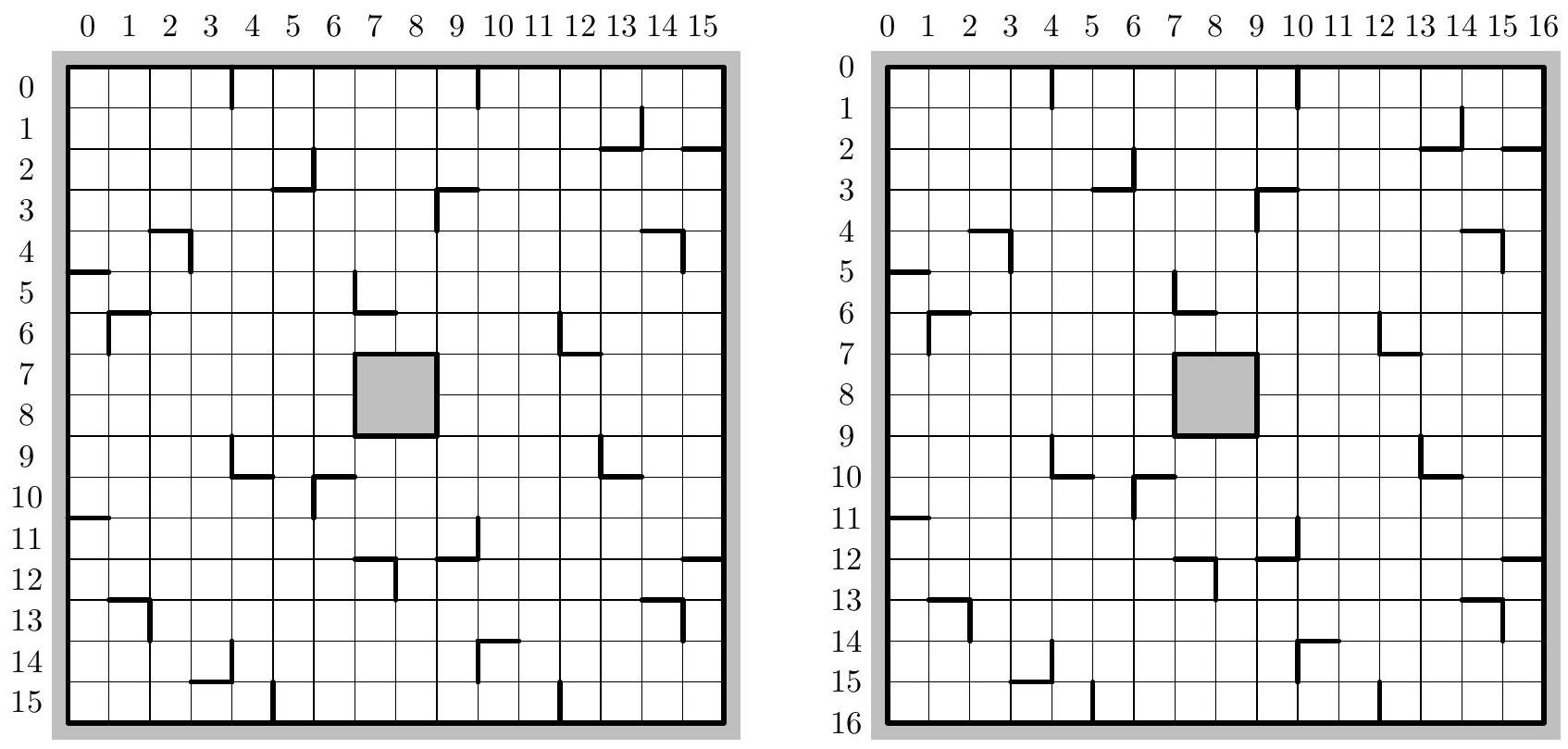 On considère pour le moment une grille sans robots du jeu Ricochet Robots. Notons