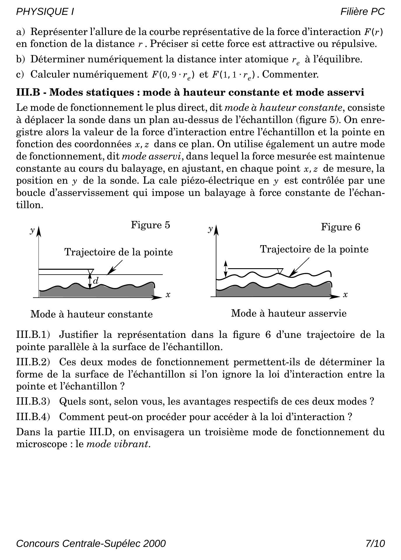 Dans la partie III.D, on envisagera un troisième mode de fonctionnement du microscope : le mode vibrant.
