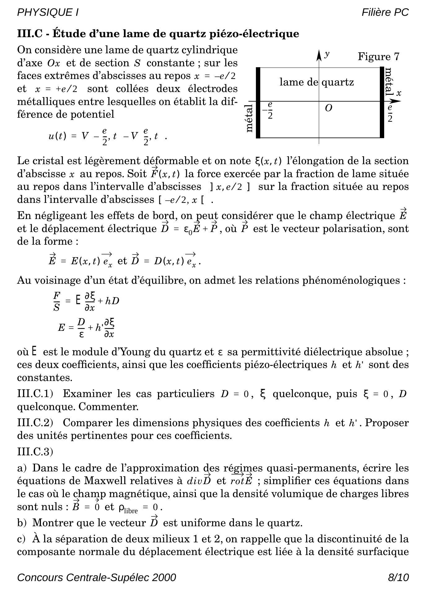 Centrale Physique 1 PC 2000 - Version Web LaTeX | WikiPrépa | WikiPrépa