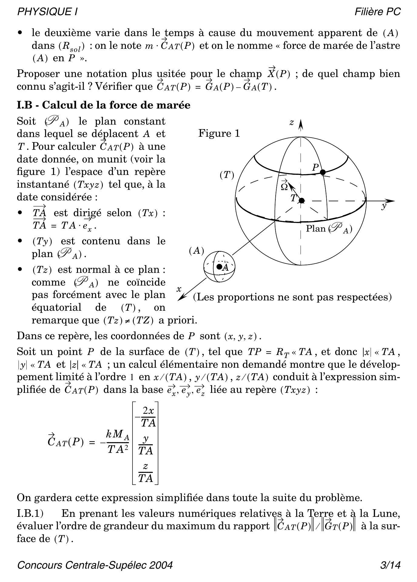 I.B.1) En prenant les valeurs numériques relatives à la Terre et à la Lune, évaluer l'ordre de grandeur du maximum du rapport à la surface de ( ).