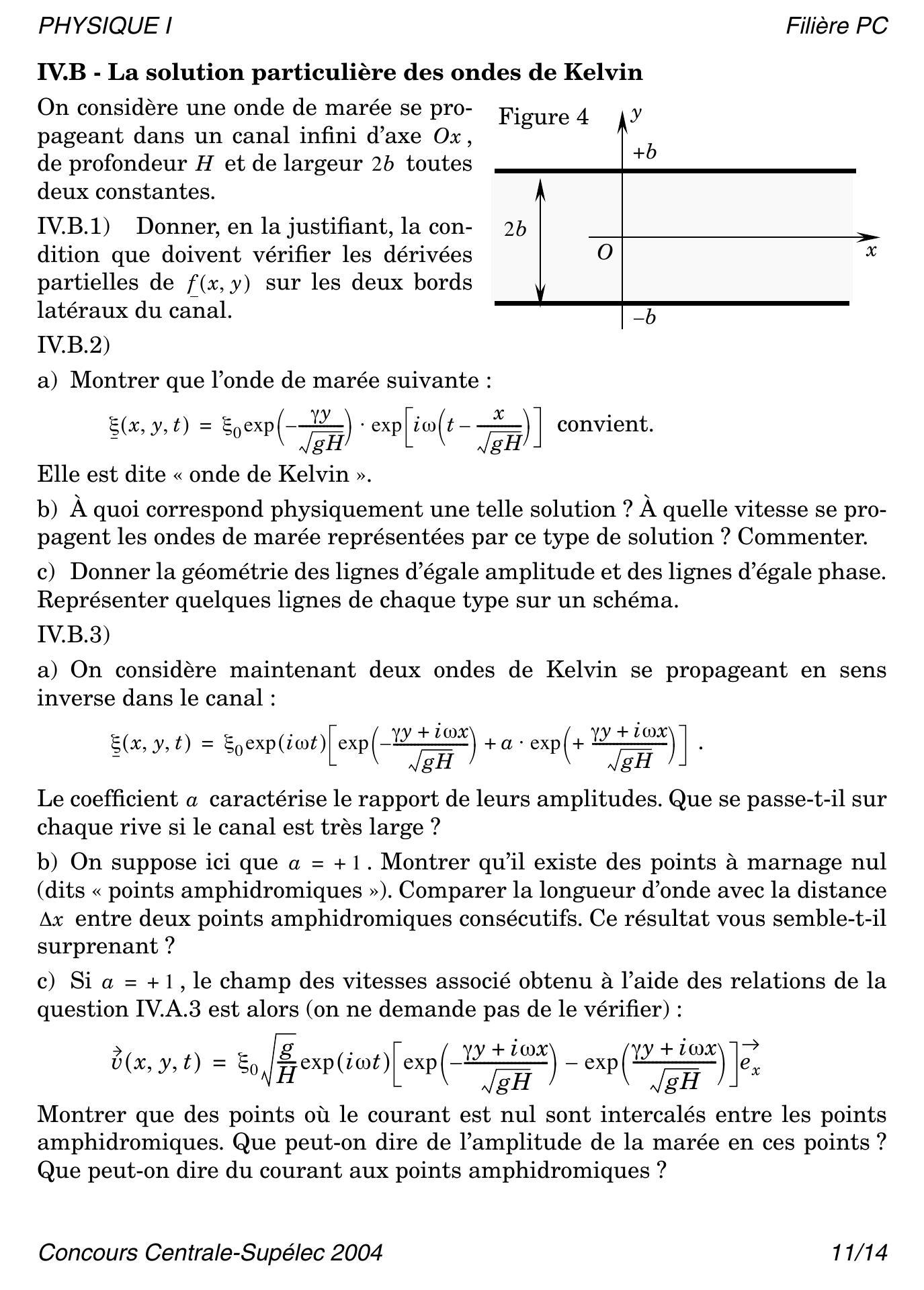 IV.A.3) Compte tenu des hypothèses faites, on cherche une onde de marée de la forme :