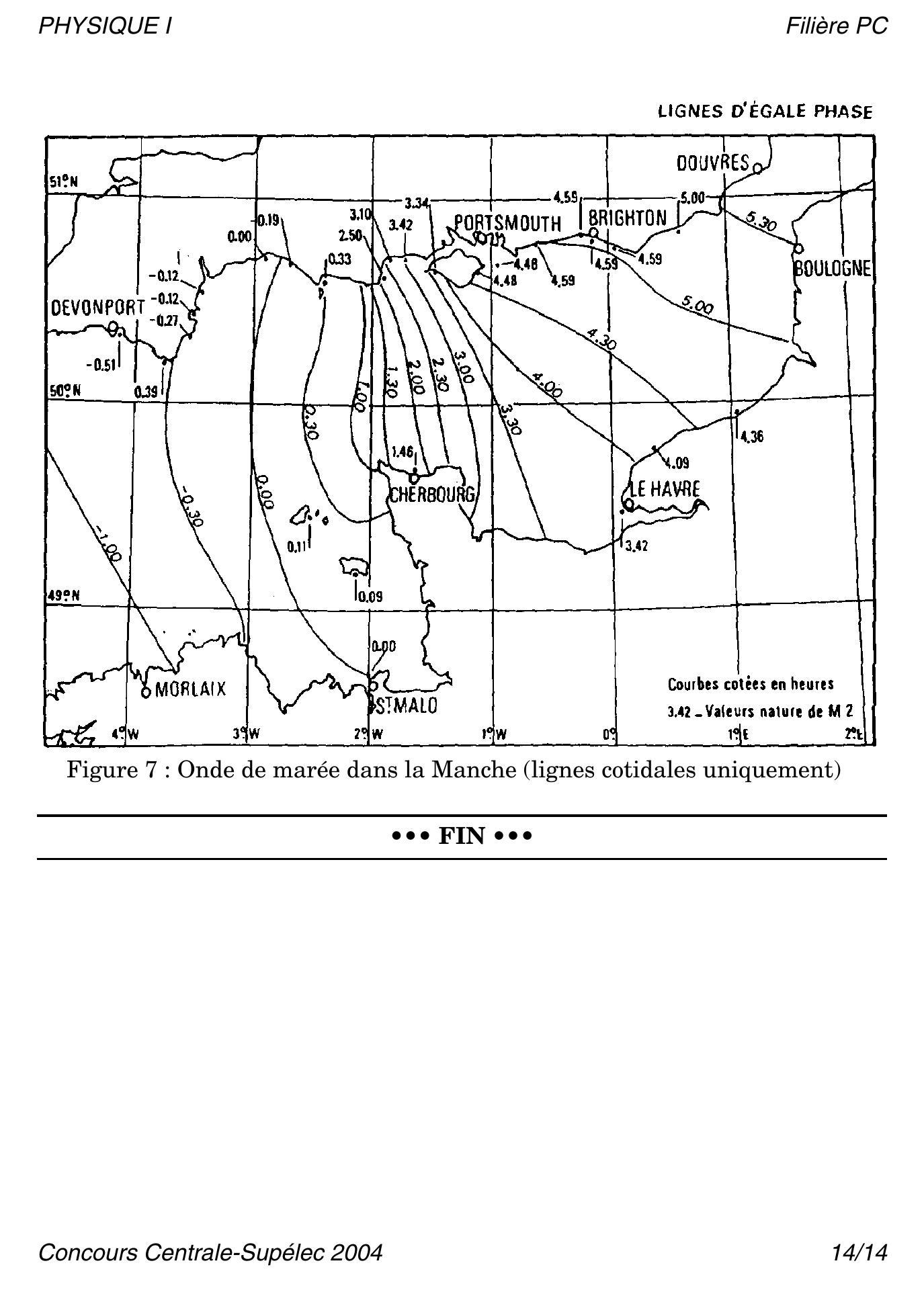Dans toute la suite du problème, on ne s'intéressera plus qu'à la propagation des ondes de marées dans des mers de faibles dimensions et on ne tiendra plus compte des forces de marées qui s'exercent dans cette mer.