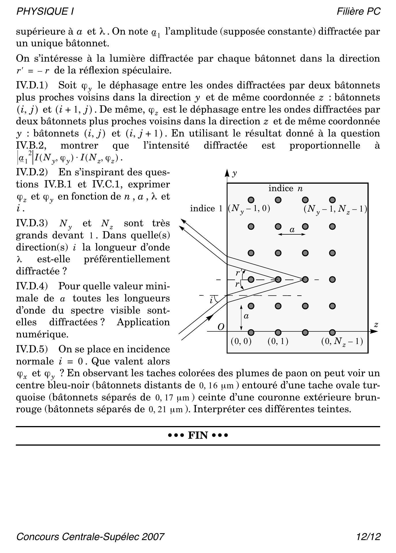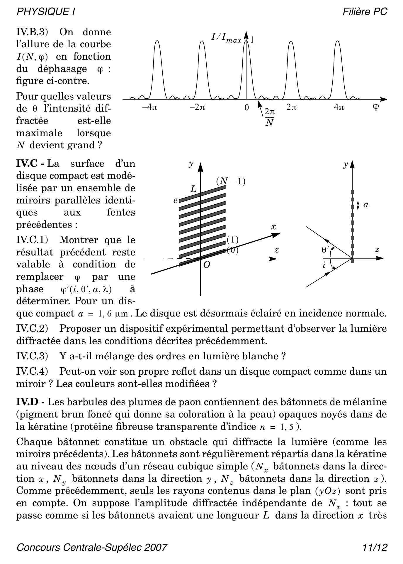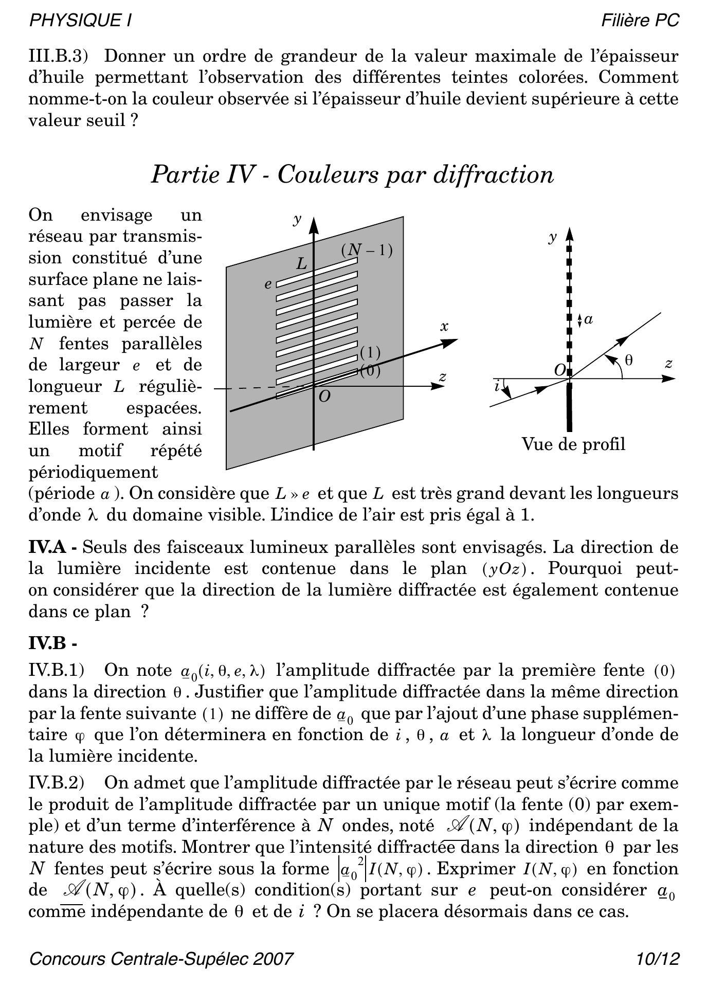 IV.A - Seuls des faisceaux lumineux parallèles sont envisagés. La direction de la lumière incidente est contenue dans le plan ( ). Pourquoi peuton considérer que la direction de la lumière diffractée est également contenue dans ce plan ?