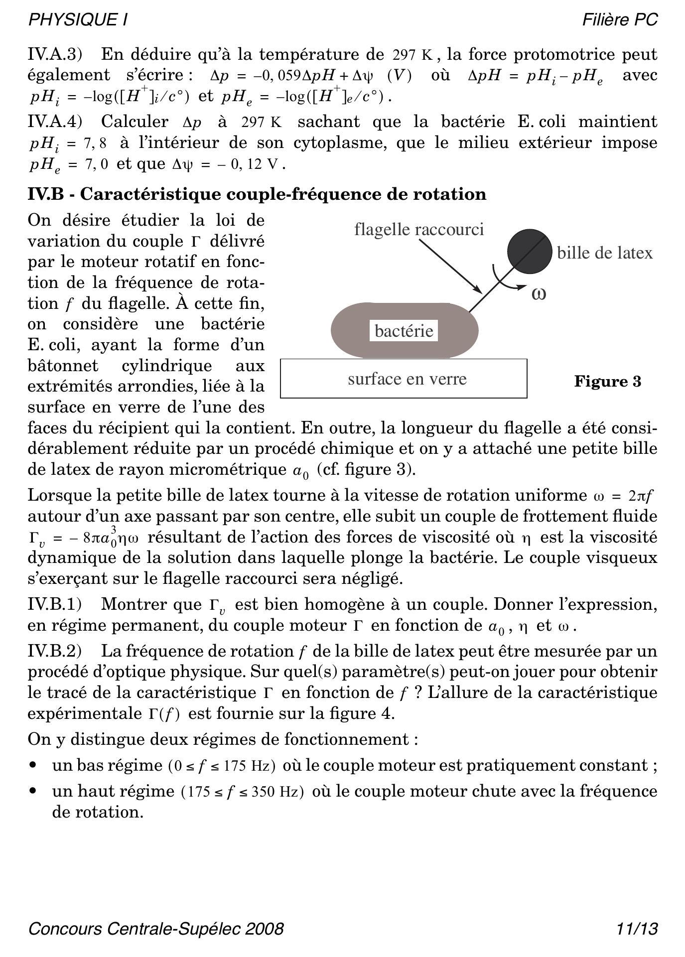 L'objet de ce problème est d'appliquer les lois de la physique à la bactérie Escherichia coli, que l'on nommera par la suite . coli. Aucune connaissance de biologie n'est nécessaire. On rappelle que et . On rappelle également les valeurs :