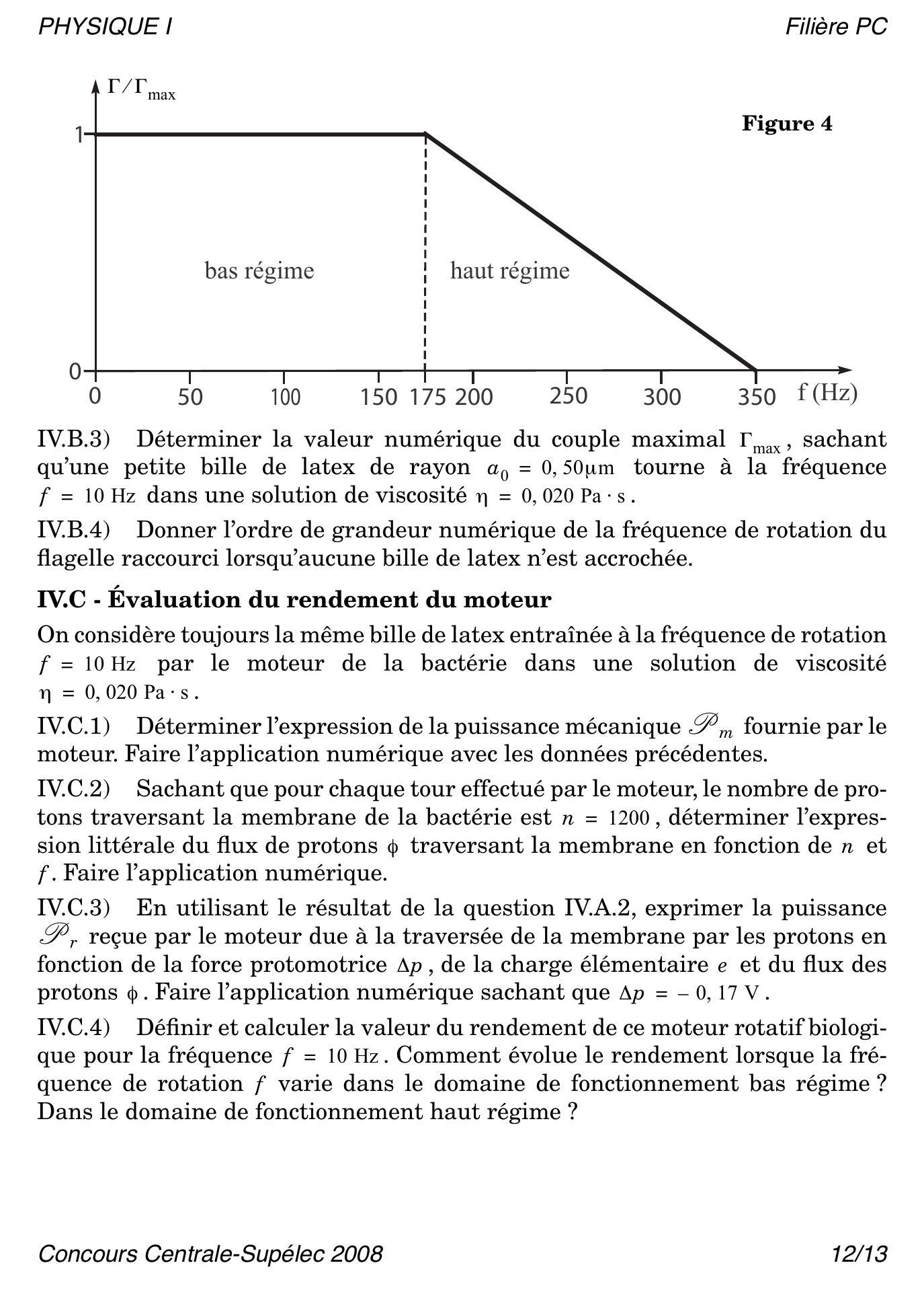 IV.C.4) Définir et calculer la valeur du rendement de ce moteur rotatif biologique pour la fréquence . Comment évolue le rendement lorsque la fréquence de rotation varie dans le domaine de fonctionnement bas régime? Dans le domaine de fonctionnement haut régime?