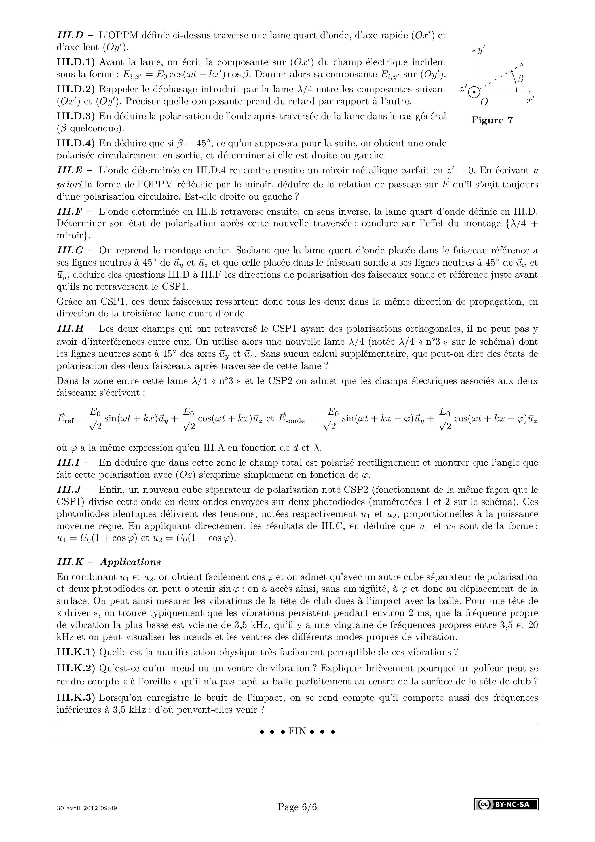 III. - L'OPPM définie ci-dessus traverse une lame quart d'onde, d'axe rapide ( ) et d'axe lent ( ).
