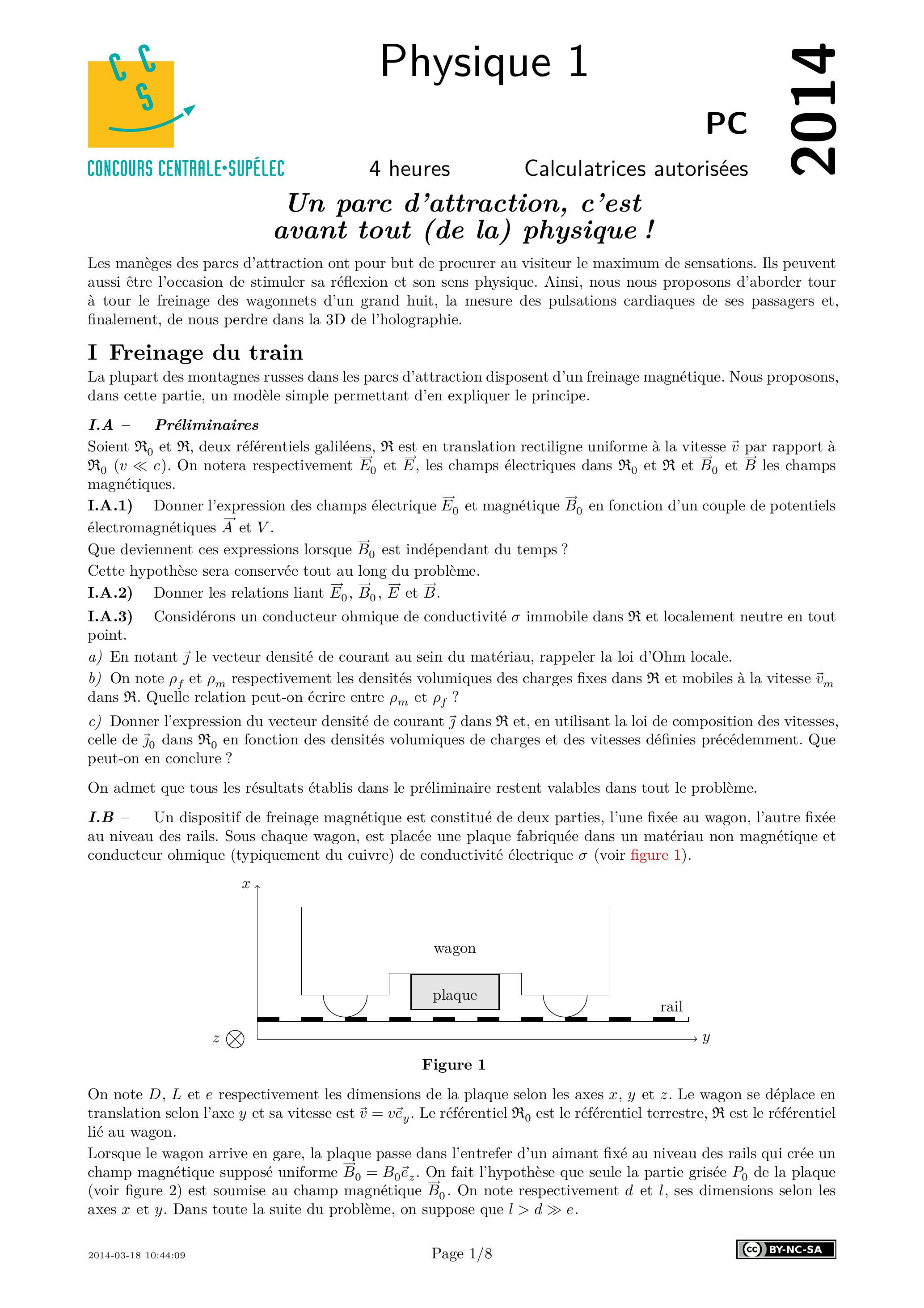 Centrale Physique 1 PC 2014 - Version Web LaTeX | WikiPrépa | WikiPrépa
