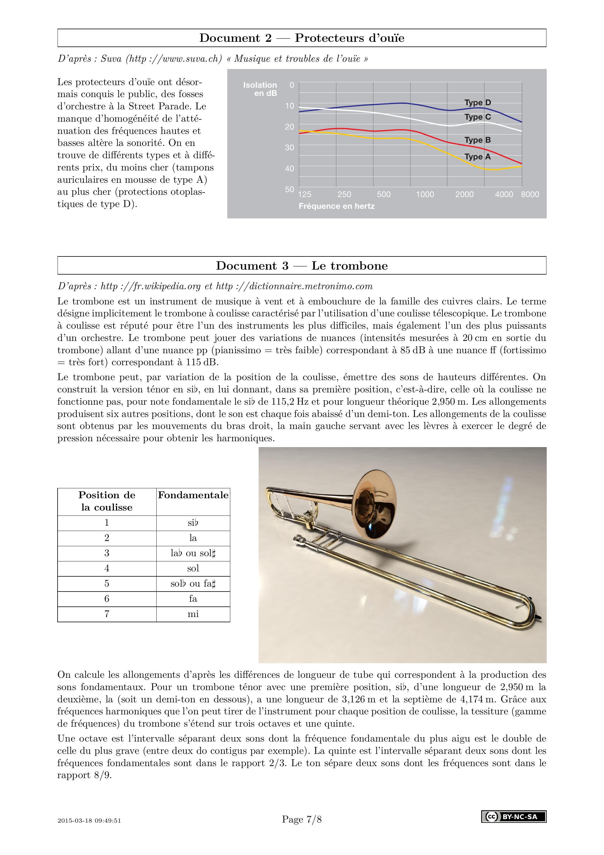 On s'intéresse à la protection auditive d'un tromboniste (documents 2,3 et 4).